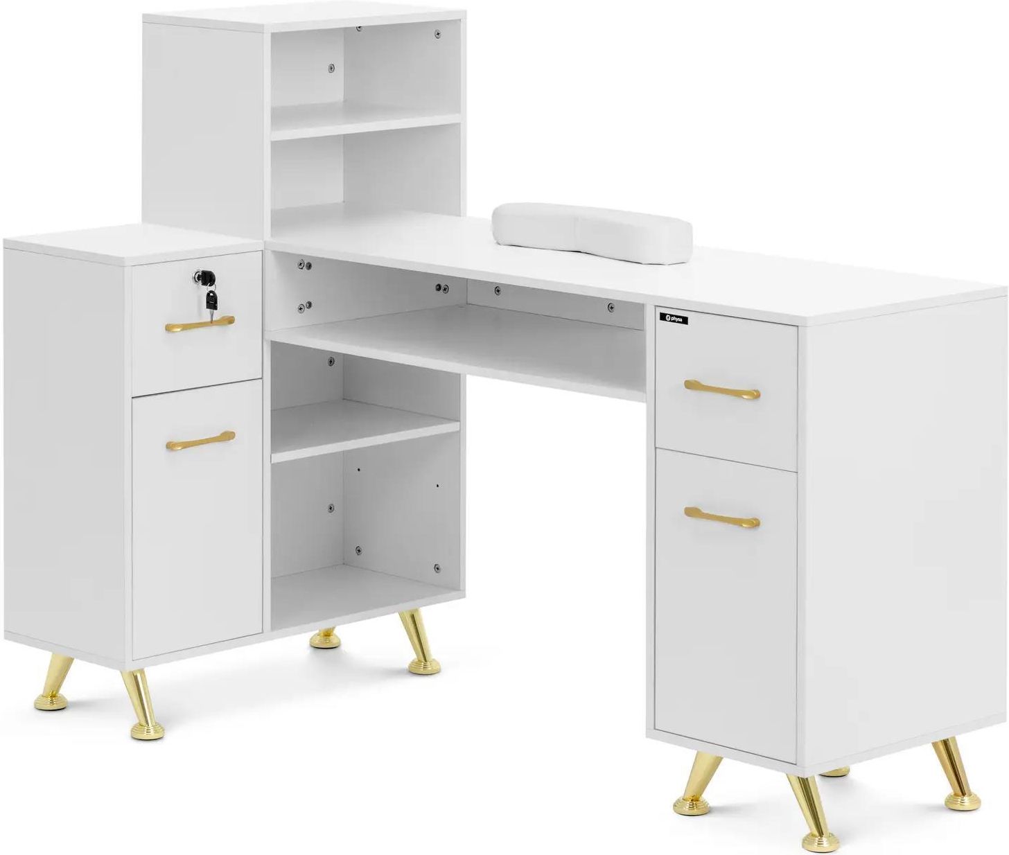 Biurko do manicure - zamykane - białe / złote - 2 szuflady - podpórka pod dłonie - physa - PHY_MC01 Zbąszyń