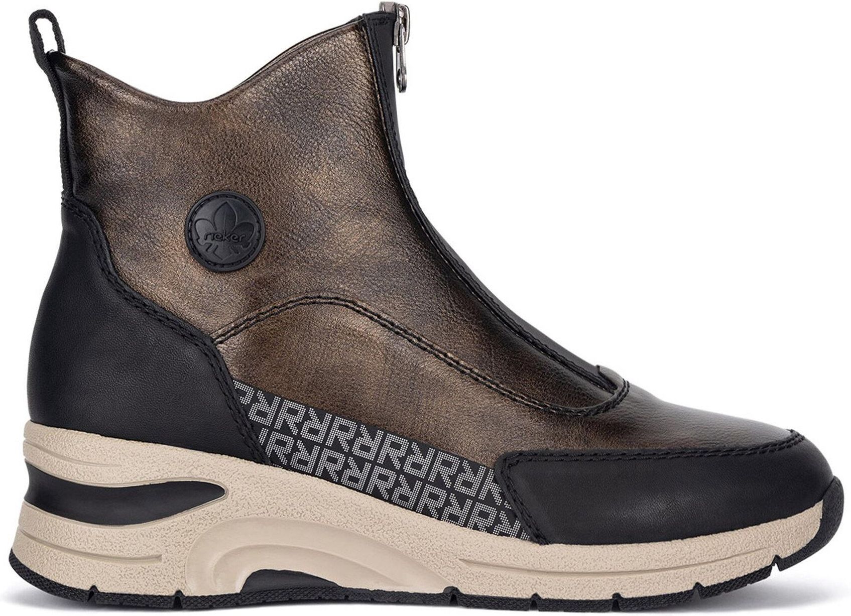Botki damskie od renomowanej marki Rieker to połączenie komfortu i niepowtarzalnego stylu. Wykonane z trwałych materiałów syntetycznych w eleganckim brązowym kolorze, doskonale sprawdzą się w codziennych stylizacjach. Dzięki zapięciu na suwak, łatwo je założysz i zdejmiesz, co z pewnością docenisz w dynamicznym trybie życia. Obcas typu koturn zapewnia stabilność i wygodę, podkreślając jednocześnie modny, casualowy charakter butów. Te botki to idealny wybór dla kobiet ceniących sobie praktyczność i styl w jednym. Od ponad stu lat marka Rieker oferuje niezwykle komfortowe i trwałe obuwie, które powstaje z myślą o zdrowiu stóp. Dzięki wieloletniemu doświadczeniu w produkcji obuwia, ta niemiecka marka doskonale potrafi łączyć wygodę ze stylem, dlatego w ofercie znajdziesz buty w modnych, oryginalnych fasonach, które każdemu przypadną do gustu. Buty Rieker tworzone są z materiałów wysokiej jakości, przez co odznaczają się wyjątkową elastycznością i trwałością, ale też lekkością. Ponadto w obuwiu stosuje się szerszą formę zapewniającą odpowiednią stabilizację stopy, specjalne podeszwy absorbujące wstrząsy oraz odciążające stawy i kręgosłup, a także wyjmowane wkładki z pianki Memory Foam, która idealnie dopasowuje się do kształtu stóp. To doskonałe produkty dla tych, którzy ponad wszystko cenią sobie komfort. Przekonaj się!
