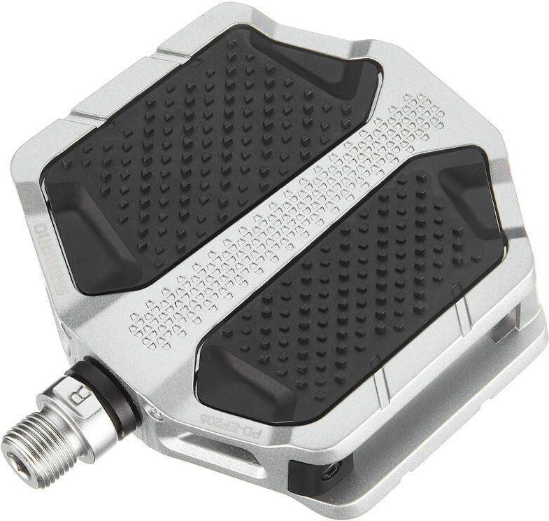 Shimano PD-EF205 E-Bike pedały platformowe srebrne Artykuł nr: 84909 Shimano kolor dominujący: srebrny EAN: 4550170617165 Pedały platformowe PD-EF205 firmy Shimano zapewniają stabilność i komfort podczas dojazdów do pracy i jazdy na rowerze miejskim. Te pedały zaprojektowane do butów ulicznych zapewniają stabilne połączenie pedału z butem ze strukturą powierzchni i szeroką powierzchnią styku wykonaną z aluminium dla bezpieczeństwa i kontroli we wszystkich warunkach pracy. Trwałość osi jak w topowych modelach Szeroki aluminiowy korpus zapewniający stabilne połączenie pedału z butem Zastosowanie: E-Bike / Trekking / City Modelu: PD-EF205 Wersja: pedał platformowy Mechanizm zaplombowany: tak Opcjonalne odbłyśniki: SM-PD53 (brak w zestawie!) materiał Korpus pedału: malowany aluminium Oś pedału: stal chromowana Waga ok. 612 g para (informacje producenta) Artykuł nr: 84909