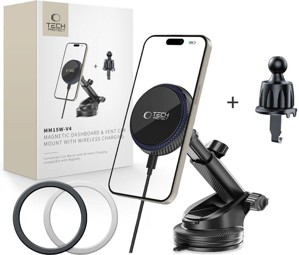 Tech-Protect Tech Protect Mm15W V4 Magnetic Magsafe Dashboard Vent Car Mount Wireless Charger 15W Black Zbąszyń