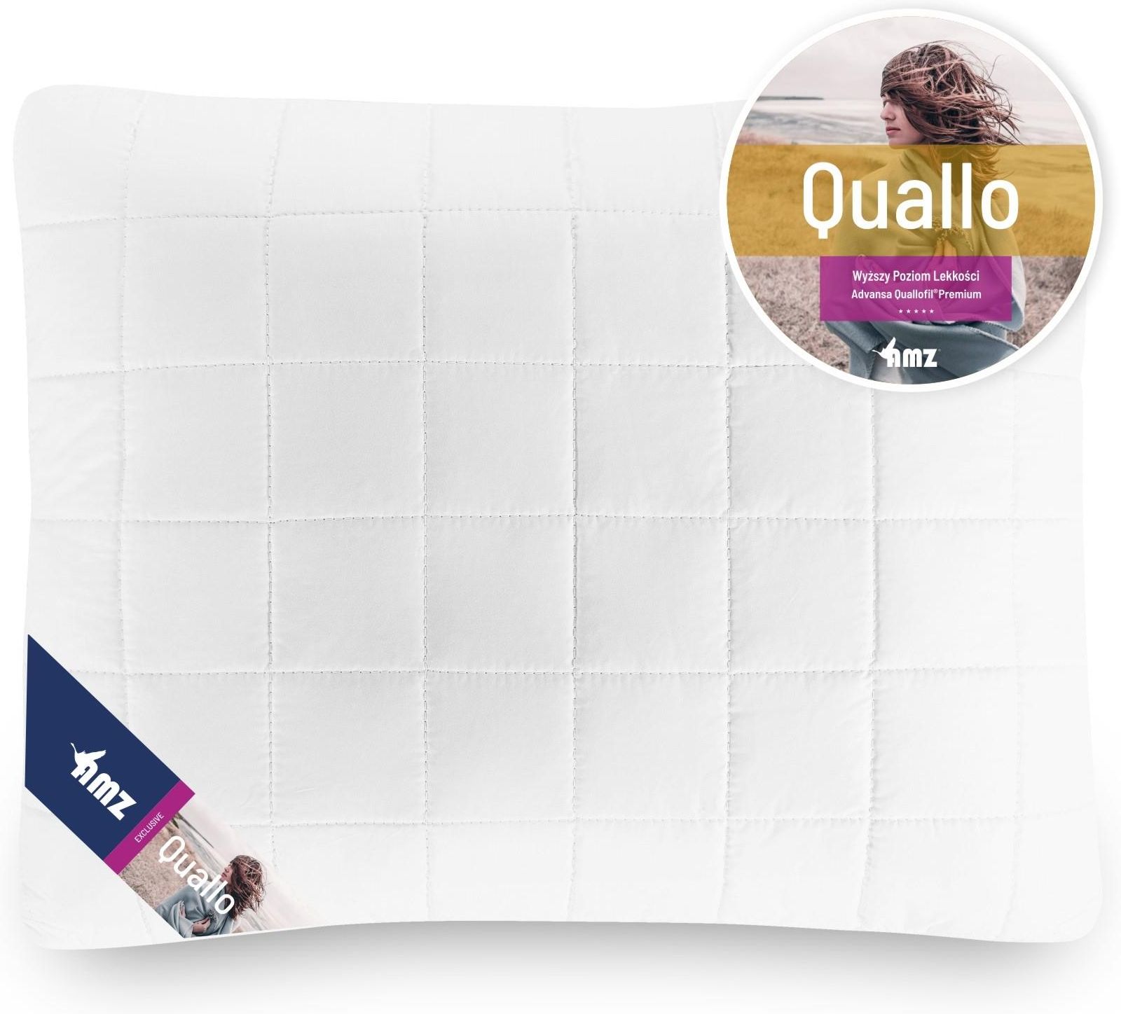 AMZ Quallo - przyjemnie otulająca, antyalergiczna poduszka Poduszka antyalergiczna pokryta najszlachetniejszą odmianą bawełny – delikatnym batystem. Wypełniona drobnymi włóknami stworzonymi w technologii 1 HOLE FIBRE TECHNOLOGY, z większą o 15% przestrzenią wewnętrzną. Wysoka zawartość powietrza w wypełnieniu zapewnia optymalną puszystość, gwarantując komfort snu przez całą noc, na długie lata. Można prać w pralce w domowych warunkach – nawet w 60°C. Wypełnienie poduszki Quallo AMZ Poduszka wypełniona drobnymi włóknami syntetycznymi ze zwiększoną przestrzenią wewnętrzną, które nadają jej zwiększoną objętość i grubość. Miękkość i doskonałą cyrkulację powietrza osiągnięto dzięki innowacyjnemu, hipoalergicznemu wypełnieniu Advansa Quallofil®Premium. Poduszka QUALLO AMZ specyfikacja Gramatura – 40×40 – 200g, 40×60 – 250g, 50×60 – 450g, 50×70 – 550g, 70×80 – 1000g Poszycie – delikatny batyst - 100% bawełna Wypełnienie – antyalergiczny Advansa Quallofil® Pielęgnacja – pranie w temp. do 60°C Poduszka antyalergiczna Gwarancja producenta 2 lata Dla kogo jest przeznaczona poduszka Quallo? alergików osób śpiących w każdej pozycji osób z nadpotliwością Rozmiary standardowe: Quallo 40×40 cm Quallo 40×60 cm Quallo 50×60 cm Quallo 50×70 cm Quallo 70×80 cm