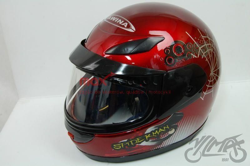 Kask mini dziecięcy junior czerwony Spiderman rozmiar głowy 47-48 cm MF10337 Kask motocyklowy integralny dla dziecka z grafiką Spidermana. Każde dziecko z pewnością będzie zadowolone mając na kasku, swojego ulubionego superbohatera. Najważniejsze cechy Rozmiar głowy: 47-48 cm Waga: 650 g - bardzo lekki Nad szybą jest malutki daszek osłaniający intensywne światło słoneczne Posiada certyfikat CE Można jeździć w kasku z założonymi okularami Wewnętrzna wyściółka welurowa, przyjemna w dotyku, antyalergiczna Uchylna szybka Kask posiada wloty powietrza w części szczękowej, oraz wewnętrzne kanały wentylacyjne Spinka na zatrzask Dodatkowe informacje o przedmiocie Towar jest fabrycznie nowy Cena dotyczy 1 sztuki Dopasowanie do pojazdu: produkt dedykowany