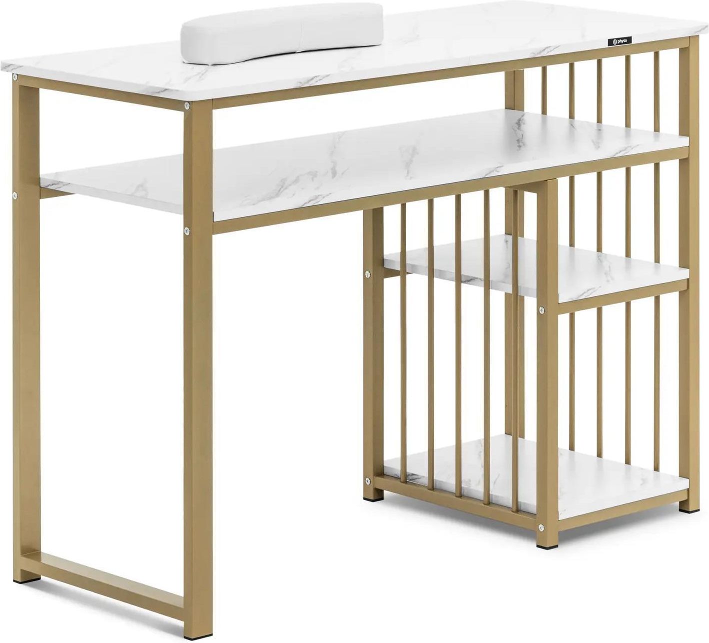 Biurko do manicure - żelazna rama - marmurowe / złote - 3 półki - podpórka pod dłonie - physa - PHY_MC11 Zbąszynek