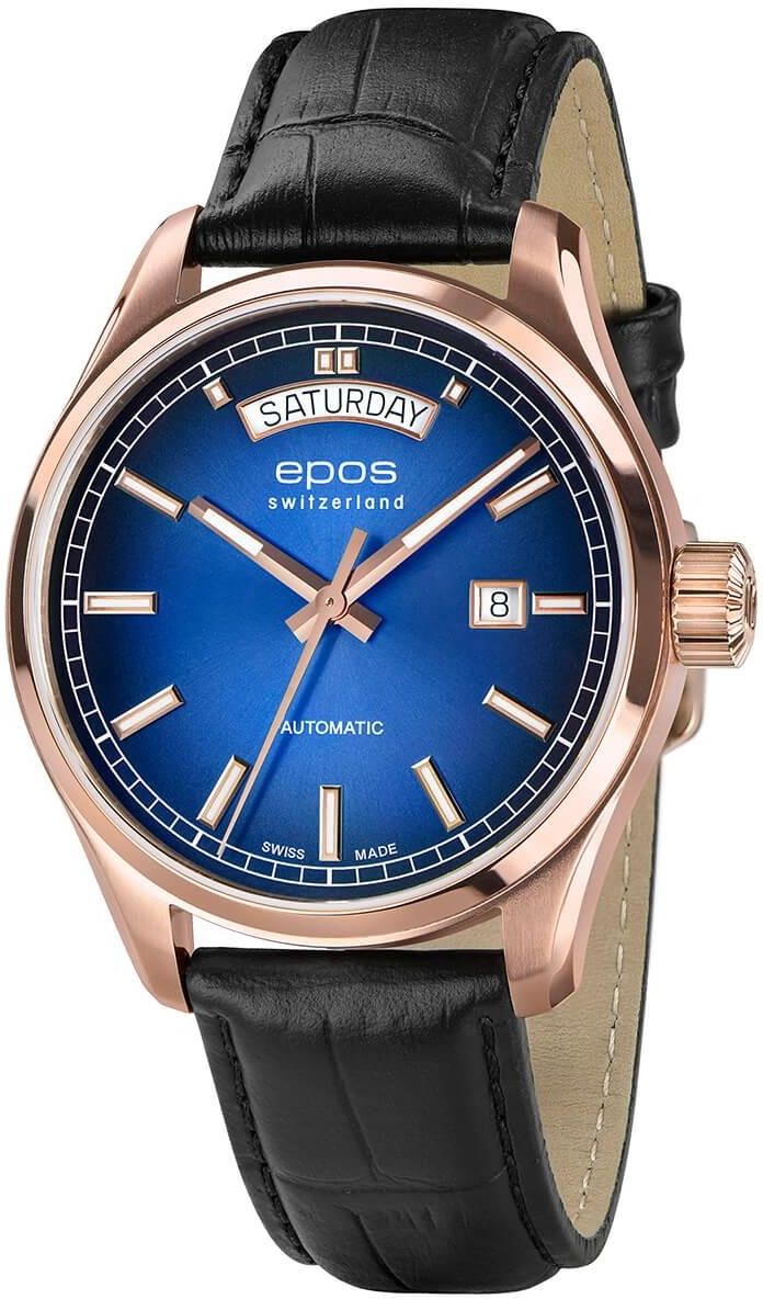 Epos 3501.142.24.96.25 Zegarek Epos 3501.142.24.96.25 to połączenie elegancji i funkcjonalności, które z pewnością przyciągnie uwagę miłośników klasycznych akcesoriów. Jego automatyczny mechanizm oraz starannie dobrane materiały sprawiają, że jest to idealny wybór zarówno na co dzień, jak i na specjalne okazje. Dzięki wyjątkowemu designowi, ten model doskonale dopełni każdą stylizację. Cechy i funkcje Ten model charakteryzuje się szeregiem wyjątkowych cech, które przyciągają miłośników zegarmistrzostwa. Oto kluczowe atuty: automatyczny mechanizm SW240, precyzyjny i niezawodny, szafirowe szkło, odporne na zarysowania, zapewniające długotrwałą estetykę, wodoszczelność 100 m, idealna do codziennego użytkowania oraz aktywności wodnych, klasyczny design z niebieską tarczą, elegancka tarcza z wykończeniem sunray, wysoka jakość materiałów, stal nierdzewna z powłoką PVD w kolorze różowego złota, skórzany pasek, czarny, dodający wygody i stylu. Model ten wyróżnia się także następującymi cechami: mechanizm: automatyczny SW240, zdobiony, zapewniający wysoką niezawodność, tarcza: niebieska z wykończeniem sunray, koperta: stal nierdzewna z powłoką Rose PVD, średnica 41 mm, szkło: szafirowe, odporne na zarysowania, wodoszczelność: 100 m, idealna do aktywności wodnych, pasek: skórzany, czarny, z klasycznym zapięciem. Styl i design Styl tego czasomierza to doskonałe połączenie tradycji z nowoczesnymi akcentami. Jego elegancka, niebieska tarcza podkreśla wyrafinowany charakter, a okrągła koperta o średnicy 41 mm doskonale komponuje się z różowym złotem. Czarny, skórzany pasek zapewnia komfort noszenia zarówno na co dzień, jak i podczas formalnych okazji, co czyni go wszechstronnym wyborem. Wodoszczelność Model ten charakteryzuje się wodoszczelnością na poziomie 100 m (10 ATM), co sprawia, że jest odpowiedni do wszelkich aktywności związanych z wodą. Dzięki temu można go nosić nie tylko na co dzień, ale również podczas sportów wodnych, co czyni go idealnym towarzyszem dla aktywnych użytkowników.