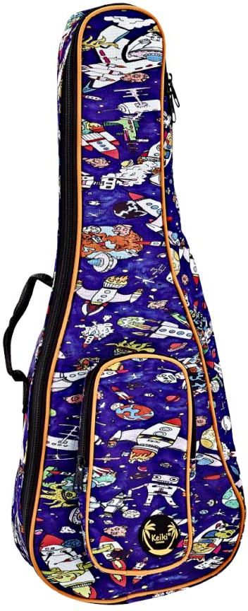 Pokrowiec typu gig bag do ukulele koncertowego. Dla bezpieczeństwa instrumentu pokrowiec posiada miękkie wypełnienie o grubości 10 mm. Materiał: Mocny i miękki nylon Wzmocnienie: 10 mm miękkiej pianki Dwa regulowane paski Kieszeń na drobne akcesoria Rozmiar: 68 cm