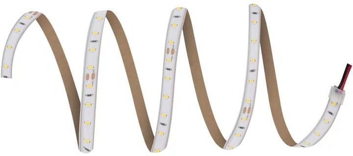 LS V -1000/840/5/IP66 – Taśma LED do zastosowań ogólnych, IP66, 5 m Taśma LED LS V -1000/840/5/IP66 to wszechstronne rozwiązanie oświetleniowe o strumieniu świetlnym 1000 lm/m, przeznaczone do użytku wewnętrznego i zewnętrznego. Dzięki elastycznej konstrukcji, samoprzylepnemu podkładowi i wysokiej klasie szczelności IP66, doskonale sprawdza się zarówno w dekoracyjnym oświetleniu wnętrz, jak i w bardziej wymagających warunkach – na elewacjach, w łazienkach, ogrodach czy strefach narażonych na wilgoć. Taśma jest gotowa do użycia dzięki fabrycznemu okablowaniu z obu stron i może być łatwo przycinana co 100 mm. Parametry techniczne: Długość taśmy: 5 m Moc całkowita: 40 W Moc na metr: 9 W Strumień świetlny całkowity: 3960 lm Strumień świetlny na metr: 1000 lm Skuteczność świetlna: 108 lm/W Barwa światła: 4000 K (dzienne białe) Wskaźnik oddawania barw (CRI): Ra > 80 Kąt świecenia: 120° Stopień ochrony: IP66 Klasa ochronności: III Zasilanie: 24 V DC Prąd nominalny: 1667 mA Temperatura pracy: od -20°C do +55°C Minimalny promień gięcia: 30 mm Samoprzylepna: tak Możliwość cięcia co: 100 mm Liczba LED na metr: 70 Liczba cykli włączeń: 100 000 Trwałość (L70/B50): do 30 000 h (przy Tc max. 75°C) Wymiary (dł. x szer. x wys.): 5000 x 10 x 4,1 mm Materiał pokrycia: silikon Odporność UV i na mgłę solną: tak (zgodnie z IEC 60068-2-5 i 60068-2-52) Podsumowanie: LS V -1000/840/5/IP66 to elastyczna taśma LED, która łączy wysoką efektywność świetlną, łatwość montażu oraz dużą odporność na czynniki zewnętrzne. Idealna do projektów oświetlenia ogólnego, dekoracyjnego i funkcjonalnego – zarówno w przestrzeniach mieszkalnych, jak i komercyjnych. Dzięki bogatej gamie akcesoriów montażowych oraz możliwości ściemniania (z odpowiednim zasilaczem), taśma oferuje pełną elastyczność projektową.