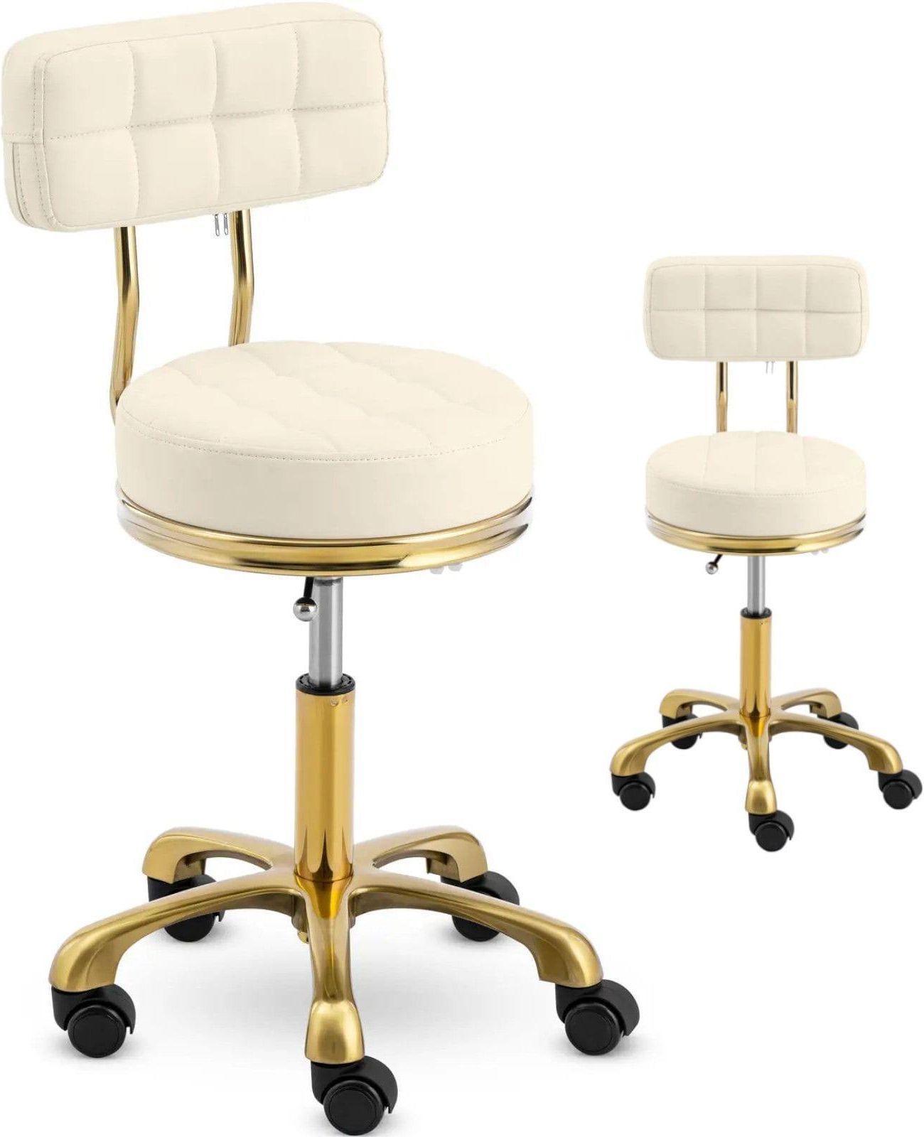 Physa Krzesło Taboret Hoker Kosmetyczny Z Oparciem Na Kółkach Do 150kg Gela Beżowo Złoty (10040799) Zbąszynek