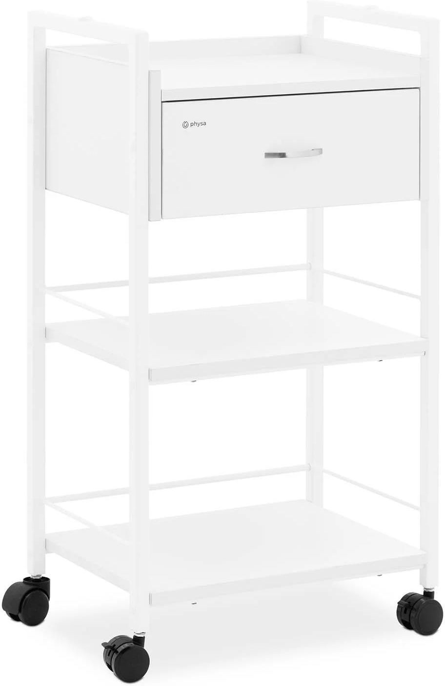 Pomocnik kosmetyczny - 1 szuflada - 3 półki - maks. 65 kg - biały marki Physa Model: PHYSA CT-6 Nr katalogowy: 10040695 Stan produktu: Nowy Najważniejsze cechy produktu Przestronność — 3 półki z ramkami i zamykana szuflada zapewniają dużo miejsca do przechowywania Wytrzymałość – duża nośność, 65 kg …