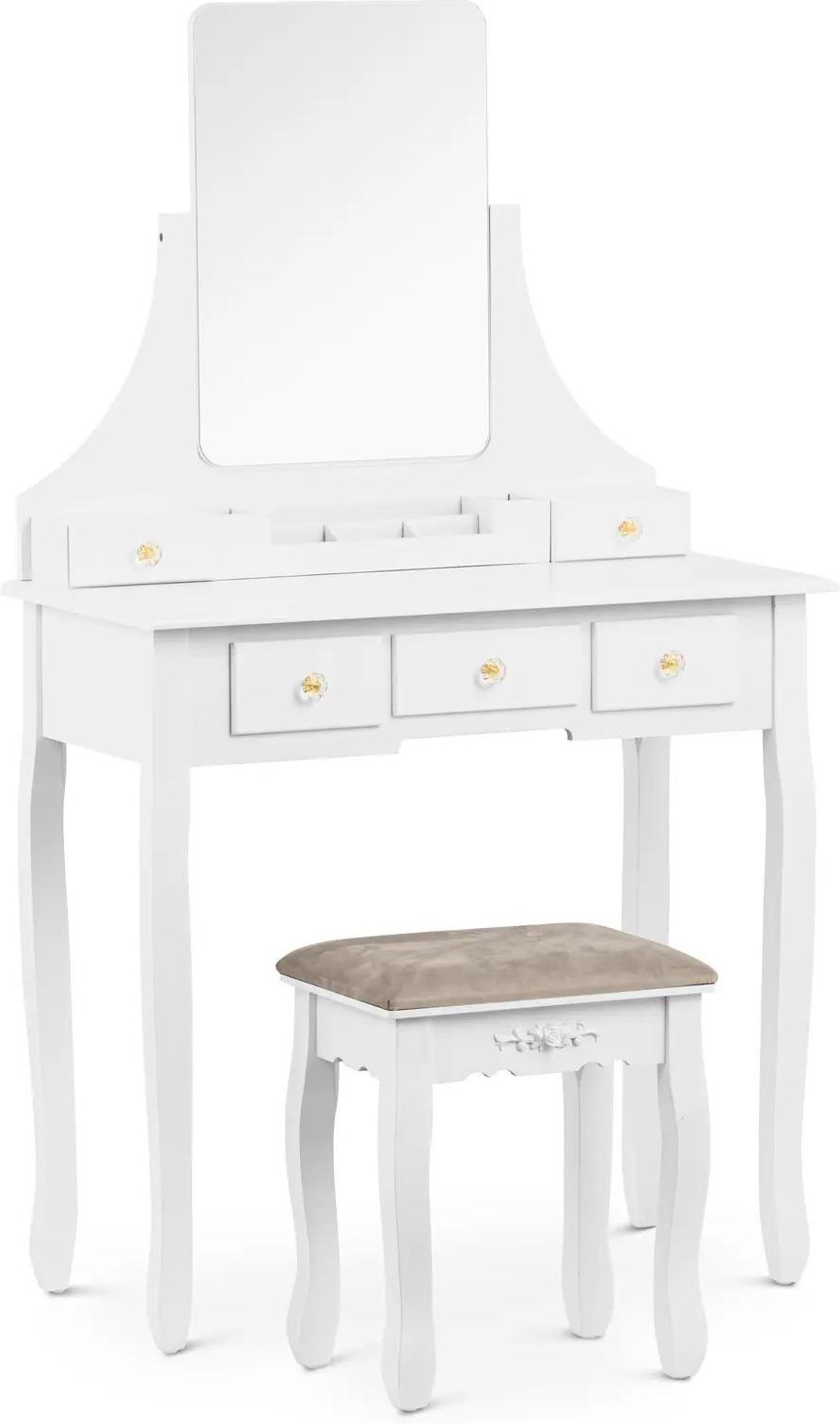 Toaletka Z Lustrem Prostokątnym I Taboretem 5 Szuflad Biała Uniprodo Uni_Dws_02 Zbąszynek