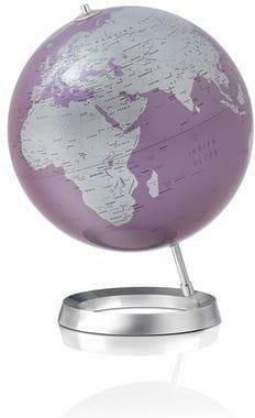 Globus biurkowy na aluminiowej podstawie z kulą z mapą polityczną w języku angielskim w barwie fioletowo-stalowej. Piękny element wystroju wnętrza, szczególnie nowocześnie urządzonego biura, gabinetu czy biblioteki albo pokoju gościnnego. Wspaniały wybór dla wszystkich, którzy kochają podróże i piękne przedmioty. To idealny prezent dla osoby w każdym wieku i o dużych wymaganiach ze względu na atrakcyjne wzornictwo oraz wysoką jakość wykonania. Marka Atmosphere produkcji włoskiej firmy Tecnodidattica słynie z wysokiej jakości nowoczesnego wzornictwa i perfekcji wykonania. Każdy model jest projektowany indywidualnie tak, by mógł stanowić zachwycający element dekoracyjny współczesnych wnętrz. Globusy Atmosphere pełnią rolę edukacyjną i dekoracyjną. Projektowane są z myślą o osobach ceniących nowoczesne wzornictwo i prostotę formy.