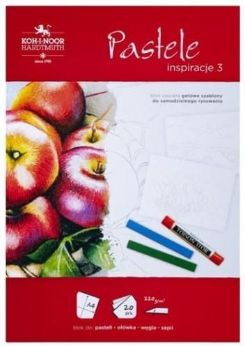 BLOK INSPIRACJE PASTELE A4 20 ARKUSZY KOH I NOOR Blok zawiera 20 gotowych szkiców ułatwiających początkującym rysownikom stawianie pierwszych kroków w nauce rysowania. Do zestawu dołączona jest instrukcja wykonania krok po kroku oraz galeria przykładowych inspiracji. Na podstawie inspiracji można uczyć się w jaki sposób nakładać cienie, warstwy, kolory, światło itd. Seria Inspiracje przygotowana jest na dedykowanym do danej techniki, specjalnie wybranym papierze. Cechy produktu: - Pastele Inspiracje do pasteli, węgla, ołówka i sepii - Zestaw zawiera 20 arkuszy po 1 arkuszu z wzoru - Blok przeznaczony jest dla początkujących rysowników oraz dla osób poszukujących inspiracji - Format: A4 - Gramatura: 220 g/m2