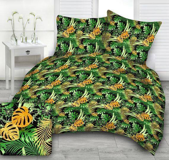 Pościele z kory stworzone są z myślą o osobach praktycznych, ceniących sobie wygodę. Wykonane są ze 100% bawełny o najwyższej jakości. Są przewiewne i delikatne dla ciała. W trakcie nawet dłuższego użytkowania pościel nie traci kolorów oraz zachowuje swój kształt i rozmiar. Największym jej atutem jest to, iż nie wymaga prasowania. Zachowuje trwałość i świeżość przez długi czas. Prezentowany komplet zachwyca nietuzinkowym wzorem egzotycznych liści na czarnym tle. Całość zwraca uwagę, nadając niepowtarzalny charakter każdemu wnętrzu. Poszwa na kołdrę i poszewki na poduszki zapinane są na praktyczny ekspres. W skład zestawu wchodzą: poszwa na kołdrę 160 x 200, dwie poszewki na poduszkę 70 x 80. Rozmiar: 160x200 cm Skład surowcowy:100% bawełna