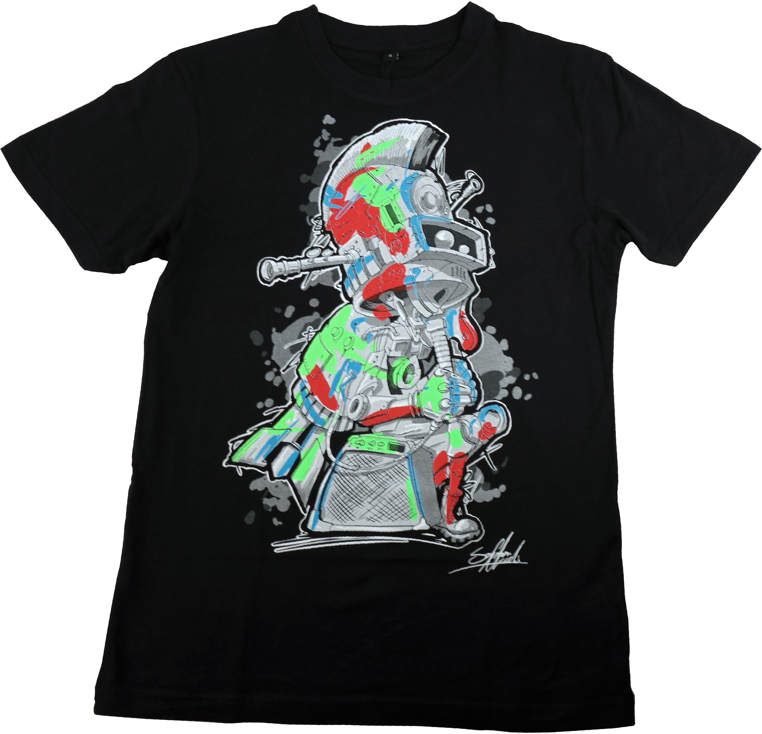 Odzież można kupić tylko w Salonach muzycznych Riff oraz na stronie www.riff.net.pl Jest to seria limitowana, więc trzeba się spieszyć z kupnem. Szymon Chwalisz to artysta, malarz, grafik, designer, absolwent UAM EASP (dyplom z malarstwa). Tworzy w technice olejnej od blisko 20 lat. Jego prace znajdują się w kolekcjach prywatnych w kraju i za granicą. W swojej sztuce łączy formalny surrealizmem z elementami pop-artu. Jego prace zawsze przemawiają mocną i kontrowersyjną treścią. Artysta znany jest również z tworzenia w technice aerografu, w której to od lat wykonuje słynne "PolandRockowe Gitary" dla Fundacji WOŚP, które osiągają kosmiczne ceny na aukcjach. Koszulka czarna Koszulka o kroju długim, slim. Z przodu nadrukowana grafika. Rozmiar: XL Kolor: Czarny Wzór: Rock Typ: Unisex Skład materiału: 100% bawełna Gramatura: 200 g/m²