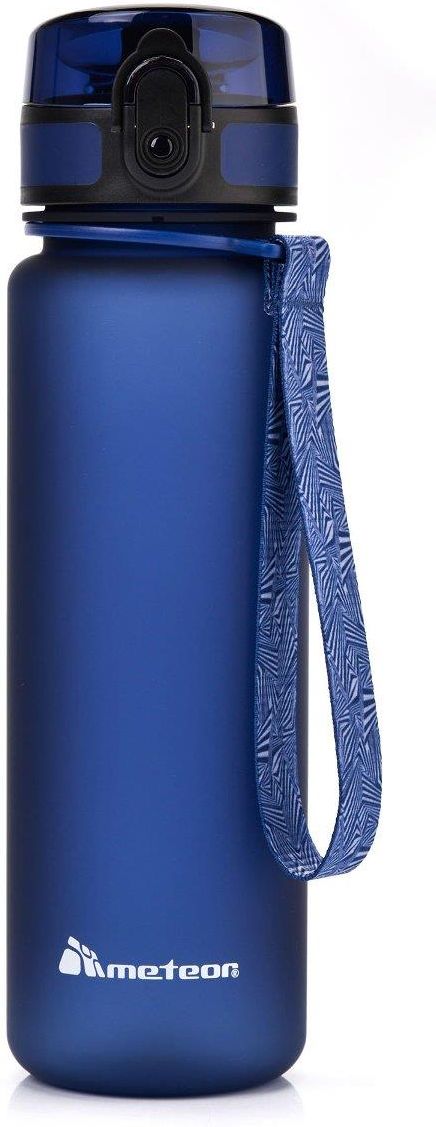 Butelka Sportowa Bidon Na Wodę Z Miarką Tritanowa Z Sitkiem 500 ml METEOR Najważniejsze cechy Pojemność 500 ml – idealna na co dzień i na trening Matowe wykończenie i antypoślizgowa powierzchnia Sitko filtrujące – oddziela owoce, lód lub herbatę System blokady i uszczelnień – bezpieczne zamknięcie Poręczny pasek na rękę i uniwersalny rozmiar Dane techniczne Numer katalogowy: 74588 Materiał: tritan Waga: 142 g Wysokość: 22,5 cm Średnica otworu: 4,6 cm Długość paska: 14 cm Wysokość korka: 4,5 cm Średnica: 6,5 cm Średnica ustnika: 1,5 cm Pojemność: 500 ml Kolor: Niebieski Zestaw zawiera: Nowy, oryginalny bidon marki METEOR, nasz firmowy kalendarzyk Bidon sportowy Meteor o pojemności 500 ml to praktyczny towarzysz, idealny na trening, siłownię, do szkoły czy na wycieczkę rowerową. Transparentna konstrukcja z matowym wykończeniem i antypoślizgową powierzchnią zapewnia nie tylko funkcjonalność, ale także nowoczesny wygląd. Poręczny kształt sprawia, że butelka dobrze leży w dłoni i pasuje do większości uchwytów samochodowych oraz rowerowych. Bidon został wyposażony w wygodny ustnik oraz miarkę, która pomaga kontrolować ilość spożywanego płynu. Dodatkowe sitko pozwala na oddzielenie owoców, kostek lodu lub liści herbaty, co umożliwia przygotowanie ulubionego napoju w dowolnej formie. Nadaje się zarówno do napojów zimnych, jak i gorących. Dzięki kompaktowym rozmiarom oraz praktycznemu paskowi, bidon świetnie sprawdza się także w plecaku lub torbie dziecka. System zamknięcia z blokadą chroni przed przypadkowym otwarciem w torbie czy plecaku. Specjalne uszczelnienie zabezpiecza ustnik, a blokada wieczka eliminuje ryzyko wycieku. To idealny wybór dla osób aktywnych, dzieci i wszystkich, którzy chcą zadbać o regularne nawodnienie w ciągu dnia. FAQ – najczęściej zadawane pytania Czy bidon nadaje się do gorących napojów? Tak, można używać go do napojów gorących, jednak nie należy wlewać wrzątku bezpośrednio. Czy pasuje do uchwytów rowerowych? Tak, jego rozmiar został zaprojektowany tak, aby pasował do większości standardowych uchwytów rowerowych i samochodowych. Czy bidon jest odpowiedni dla dzieci? Tak, dzięki pojemności, szczelnemu zamknięciu i kolorystyce bidon świetnie sprawdza się również wśród młodszych użytkowników.