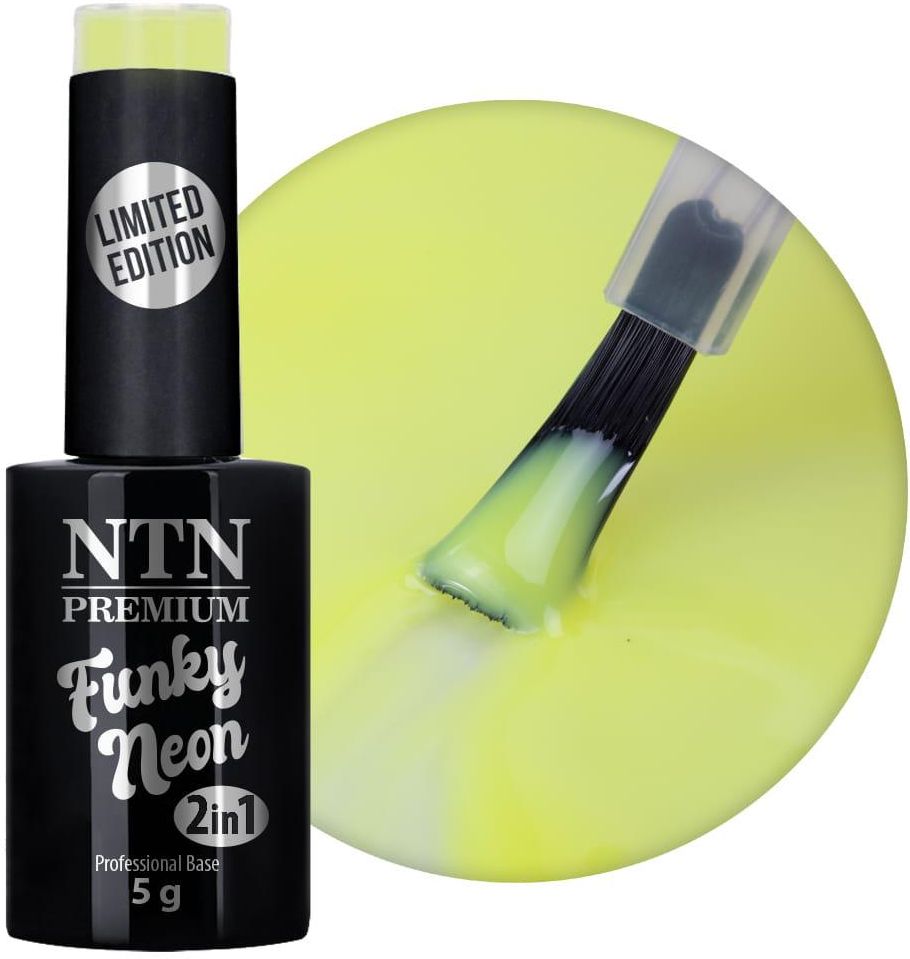 NTN Premium Baza Funky Neon 2in1 5 g - Nr 2Poznaj energetyczną kolekcję 2w1 od NTN premium - czyli bazy w najpiękniejszych fosforyzujących kolorach! Dzięki doskonałemu kryciu, dużej gęstości i właściwościom budującym spełniają kilka funkcji w jednym produkcie. Przyśpiesz pracę i jednocześnie stwórz pięknie napigmentowaną stylizację w jednym. Nie musisz już stosować lakieru podkładowego aby podbijać neonowy wyraz bazy - a zatem zaoszczędź swój czas. Wyrównaj ubytki, nadbuduj i przedłuż o 2mm paznokcie nadając im innowacyjną ochronę przed uszkodzeniami. Słoneczny odcień pięknego żółcieniu, perfekcyjnie współgrać będzie z pomarańczem i czerwienią. Zatuszuj mankamenty płytki dzięki wysokiemu poziomowi krycia na poziomie ok 90-95%! Natężenie koloru będzie oczywiście zależało od grubości warstwy i efektu końcowego jaki pragniesz uzyskać.Stosuj solo jako energetyczną stylizację, mieszaj dowolnie kolory lub stosuj jako podkład do dalszych działań! Bazy mają właściwości samopoziomujące jednak nie zalewają skórek. Jeśli zdarza Ci się zalać skórki bazą standardową (bezbarwną) – baza z kolorem pozwala na idealne i precyzyjne określenie pola malowania. Dzięki wysokiej gęstości bazy ryzyko to jest również zredukowane.Idealna, zadbana płytka paznokcia bez skazy w wyjątkowych neonowych kolorach!Sposób użycia: Na dokładnie przygotowaną płytkę paznokcia zaaplikuj cienką warstwę bazy. Następnie większą ilością zbuduj krzywą i apeks. Po utwardzeniu możesz od razu aplikować top lub usunąć dyspersję cleanerem i wyrównać ewentualne nierówności bloczkiem. Czas utwardzania: Led 48 W – 30 sek., Led 24 W – 60 sek., UV/Led 36 W – 45 sek.
