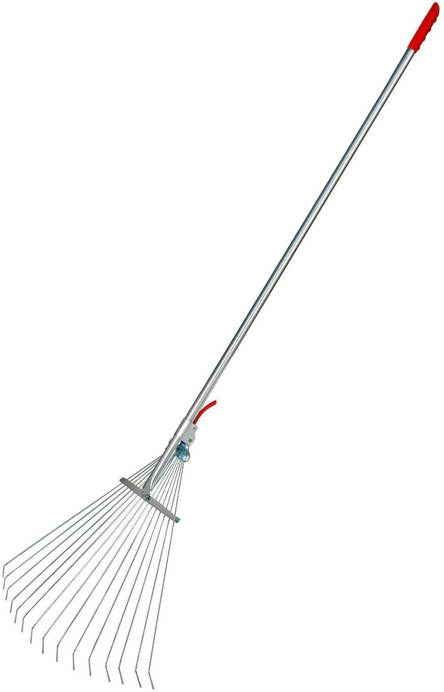 Grabie do liści, z trzonkiem.Przeznaczone do lekkich prac porządkowych. Szczególnie do grabienia suchych liści. Sprężynujące, stalowe, malowane proszkowo płaskowniki, umożliwiają grabienie z powierzchni kamienistych oraz z utwardzonych.Szerokość robocza narzędzia jest regulowana w zakresie od 19 cm do 56 cm.Grabie do liści są lekkie, sprawne i niezawodne.