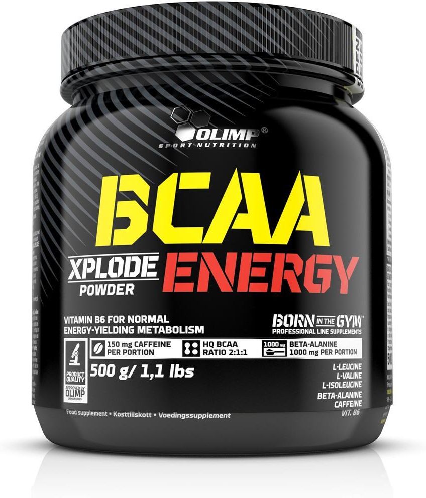 O korzystnej roli aminokwasów BCAA w kontekście sportowego wspomagania wiadomo nie od dziś. Dlatego specjaliści firmy farmaceutycznej Olimp Laboratories postanowili pójść o krok dalej i przygotowali produkt, który pozwoli na spotęgowanie pracy nad wymarzoną sylwetką i sportową formą! Suplement diety BCAA 4:1:1 Xplode Powder® to całkowicie nowa formuła jednego z najpopularniejszych produktów w ofercie marki Olimp Sport Nutrition, który charakteryzuje się aż czterokrotnie większą od L-waliny i L-izoleucyny zawartością L-leucyny – fundamentalnego komponentu w procesie syntezy nowych białek mięśniowych po zrealizowaniu zaplanowanego treningu! Od teraz masz szansę, aby ćwiczyć jeszcze mocniej i jeszcze bardziej intensywnie pracować nad pożądanymi efektami! Sięgając po aminokwasy rozgałęzione marki Olimp Sport Nutrition masz pewność, że wybierasz produkt przygotowany wedle światowych standardów i zaawansowanej technologii! Przestań się oszukiwać! Sięgnij po suplement diety, który stanowi wybór prawdziwych zawodowców! Postaw na aminokwasy rozgałęzione BCAA 4:1:1 Xplode Powder® i nie odpuszczaj! BCAA 4:1:1 Xplode Powder® to: prosty i wygodny sposób na uzupełnienie codziennej diety w wysokiej jakości aminokwasy rozgałęzione BCAA aż 4,5 g aminokwasów BCAA w każdej porcji, z czterokrotnie większą zawartością L-leucyny nad L-waliną i L-izoleucyną! wsparcie dla mięśni i pomoc w budowaniu oraz utrzymaniu masy mięśniowej1 niewielka ilość cukru topowy suplement diety, popularny wśród wyczynowych sportowców i amatorów bez względu na rodzaj uprawianej dyscypliny sportowej preparat o doskonałej rozpuszczalności i przepysznych smakach (gruszka, fruit punch) Składniki: wolne aminokwasy BCAA (60% L-leucyna, 15% L-walina, 15% L-izoleucyna), regulator kwasowości – kwas cytrynowy; aromaty, substancja słodząca – sukraloza; emulgator – lecytyny (z soi); barwniki – karoteny (A), karmin (B), ryboflawiny (C), E 150c (D), E 150d (E), E 133 (F), błękit patentowy V (G), indygokarmin (H), chlorofile i chlorofiliny (I), kurkumina (J), antocyjany (K), ekstrakt z papryki (L), betanina (M), węgiel roślinny (N). (A)-(Z) – W zależności od smaku produktu symbol (A-Z) użytego składnika znajduje się obok daty minimalnej trwałości (najlepiej spożyć przed). Wyprodukowano w zakładzie wykorzystującym składniki pochodzące z mleka, jaj, soi, orzechów, orzeszków ziemnych (arachidowych), zbóż zawierających gluten, ryb, skorupiaków, mięczaków. Wartość odżywcza 1 porcja (5g) 2 porcje (10g) na 100g Wartość energetyczna 84 kJ / 20 kcal 168 kJ / 40 kcal 1685 kJ / 402 kcal Tłuszcz, w tym: kwasy tłuszczowe nasycone < 0,5 g < 0,1 g < 0,5 g < 0,1 g < 0,5 g 0,2 g Węglowodany w tym cukry < 0,5 g < 0,5 g < 0,5 g < 0,5 g 1,0 g 1,0 g Białko 3,1 g 6,2 g 62 g Sól < 0,01 g 0,02 g 0,15 g Aminokwasy rozgałęzione BCAA* w tym: 4,5 g 9 g 90 g L-leucyna 3 g 6 g 60 g L-walina 0,75 g 1,5 g 15 g L-izoleucyna 0,75 g 1,5 g 15 g *aminokwasy rozgałęzione 500 g - 100 porcji Zalecana dzienna porcja: 1-2 porcje dziennie – przed posiłkiem lub treningiem oraz po treningu lub przed snem. 1 porcję (5 g proszku = 1 miarka) rozpuścić w 250 ml wody*. Spożyć zaraz po przygotowaniu. Nie należy przekraczać porcji zalecanej do spożycia w ciągu dnia. Suplement diety nie może być stosowany jako substytut zróżnicowanej diety. Zalecany jest zrównoważony sposób żywienia i zdrowy tryb życia. Uwaga: Nie zaleca się stosowania produktu przez dzieci, kobiety w ciąży i karmiące piersią. Dopuszczalne wytworzenie się osadu niewpływające na jakość produktu. * Aby dostosować intensywność smaku do indywidualnych preferencji rozpuścić w ilości 100 - 250 ml wody. BCAA 4:1:1 Xplode Powder® to suplement diety przeznaczony dla osób dorosłych, aktywnych fizycznie, ćwiczących amatorsko i wyczynowo, dążących do uzupełnienia diety w aminokwasy BCAA.
