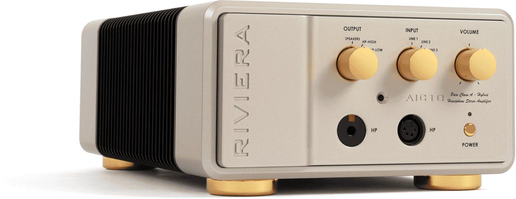 Wzmacniacz słuchawkowy Riviera AIC-10 Riviera AIC-10 | Wzmacniacz słuchawkowy zintegrowany | Klasa A | 2x10W Zintegrowany wzmacniacz słuchawkowy Riviera AIC-10 został stworzony z myślą o miłośnikach słuchawek, którzy poszukują wyjątkowej jakości dźwięku. Aby osiągnąć absolutną czystość brzmienia, celowo zrezygnowano z elementów mogących wpływać na sygnał, takich jak wewnętrzny przetwornik DAC czy zbędne regulatory. Główne Cechy: Zerowe sprzężenie zwrotne Czysta klasa A Układ hybrydowy 2x10 W mocy wyjściowej Urządzenie potrafi wysterować każde słuchawki z niezwykłą naturalnością, a dzięki wyjściom głośnikowym może z łatwością napędzać również kolumny o średniej czułości w warunkach domowych. W celu optymalnego dopasowania do różnych urządzeń, na przednim panelu umieszczono przełącznik wyboru wyjścia: Speakers: wyjście na głośniki. HP-High: wyjście słuchawkowe o wysokim poziomie sygnału, przeznaczone dla słuchawek o niskiej czułości. HP-Low: wyjście słuchawkowe o niskim poziomie sygnału, idealne dla słuchawek o wysokiej czułości. Specyfikacja Techniczna: Moc: 10+10W (przy 8 Ω) Sprzężenie zwrotne: Zero Feedback (brak globalnego sprzężenia zwrotnego) Tryb pracy: Czysta klasa A Układ: Hybrydowy Wejścia: 3 wejścia liniowe RCA Wyjścia słuchawkowe: 2 (XLR 4-pin oraz Jack 6,35 mm) Wyjście na głośniki: Możliwość odłączenia za pomocą regulatora na przednim panelu Sterowanie: Pilot zdalnego sterowania w zestawie Wymiary: 26 x 43,5 x 14,5(h) cm Waga: 14,4 kg