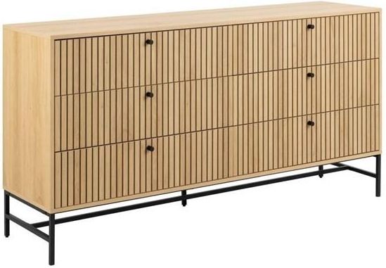 Komoda Albany marki Actona to propozycja dla wymagających, którzy cenią funkcjonalność i nowoczesny design. Model o szerokości 158 cm wykonany został z naturalnej okleiny dębowej i posiada aż 6 pojemnych szuflad z ryflowanymi frontami, które stanowią unikatową ozdobę mebla. Stalowe, czarne nóżki …