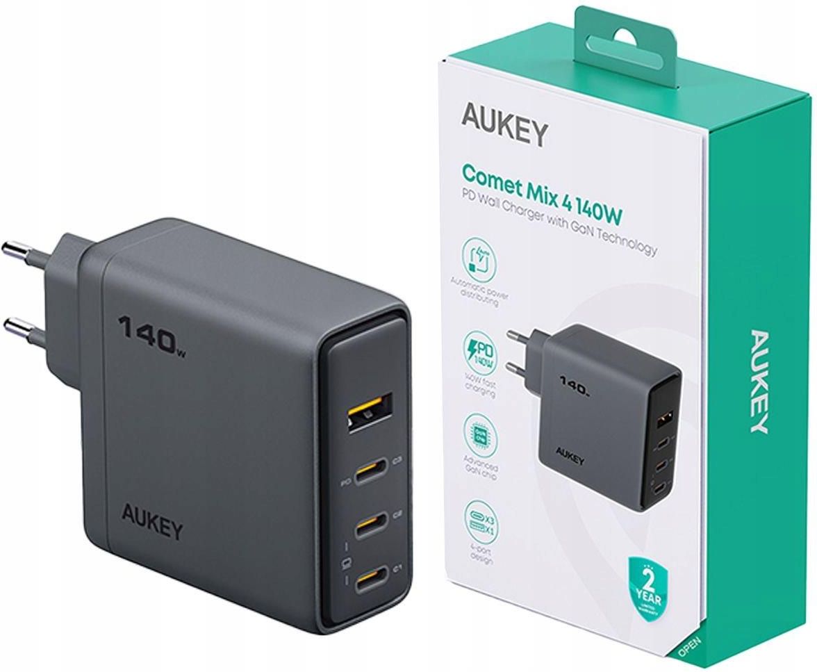 ŁADOWARKA SIECIOWA AUKEY podróżna kompaktowa 140W 1x USB-A 3x USB-C GaN Ładowarka sieciowa Comet Mix 4 140W z możliwością szybkiego i bezpiecznego ładowania wielu urządzeń jednocześnie w kompaktowej, przenośnej formie Kompaktowy i super smukły design - wyjątkowo cienka konstrukcja sprawia, że …