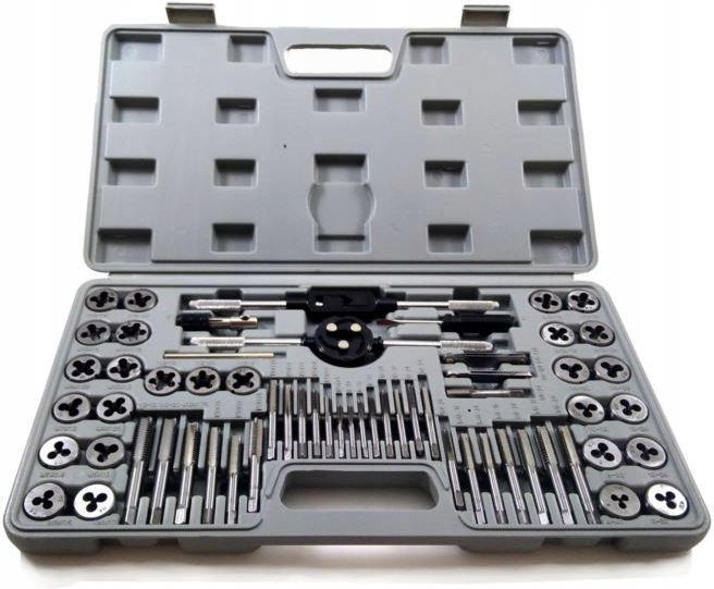 ZESTAW NARZYNEK i GWINTOWNIKÓW CALOWYCH UNC I METRYCZNYCH 60 ELEMENTÓW Zestaw narzynek i gwintów, zawiera 60 elementów. W komplecie znajduje się 27 narzynek oraz 27 gwintowników świetnej jakości Narzędzia w zestawie zarówno w rozmiarówce metrycznej jak i amerykańskiej UNC. Rozmiary narzynek i …