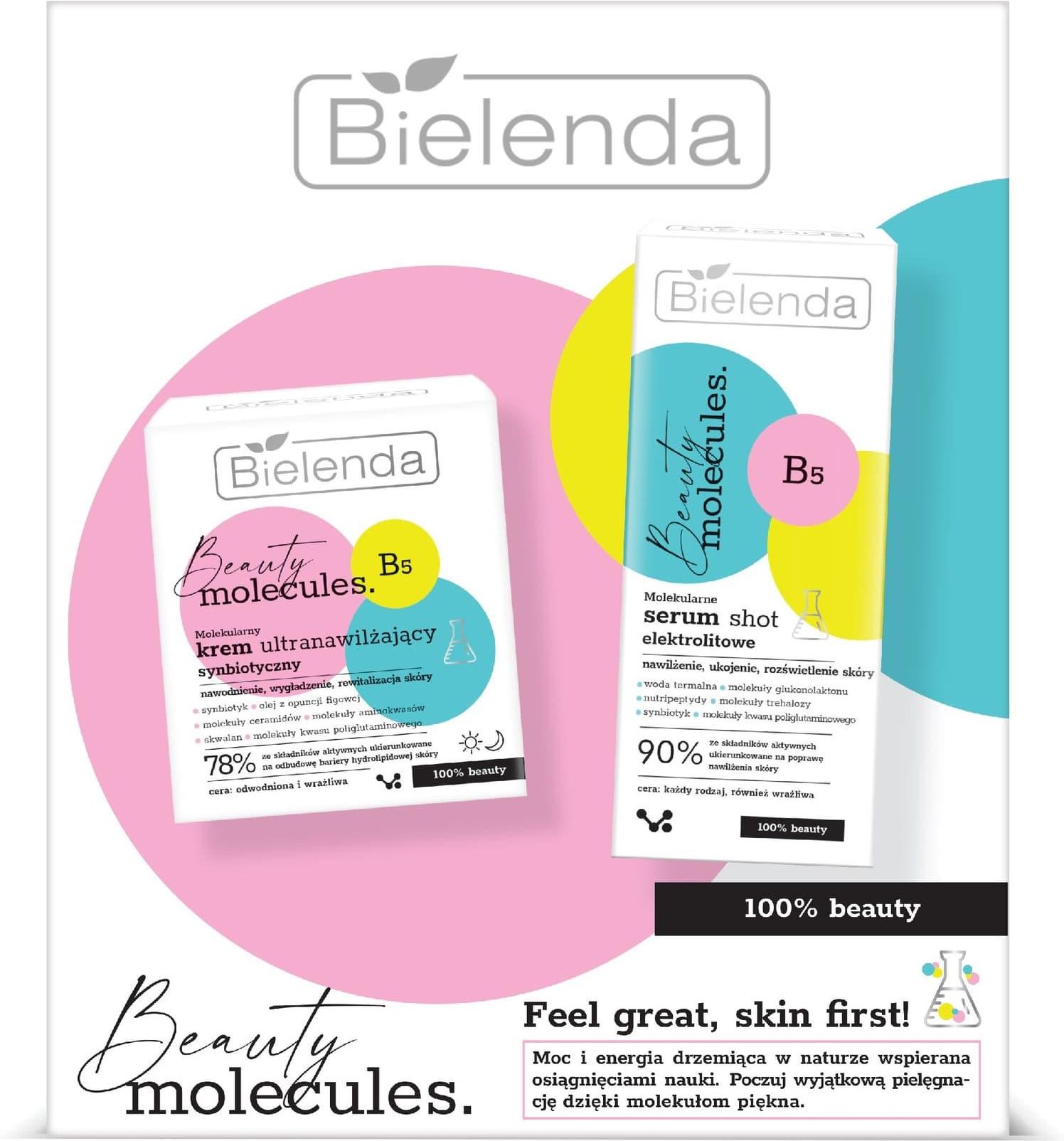 BIELENDA Zestaw Beauty Molecules: Krem 50ml + Serum 30ml - Nawilżenie i Pie BIELENDA ZESTAW BEAUTY MOLECULES KREM NAWILŻAJĄCY 50ML+SERUM DO TWARZY 30ML Molekularny synbiotyczny krem ultranawilżający, 50 ml: Ten krem nie tylko dba o mikrobiom, ale także intensywnie nawilża, błyskawicznie wygładza, …