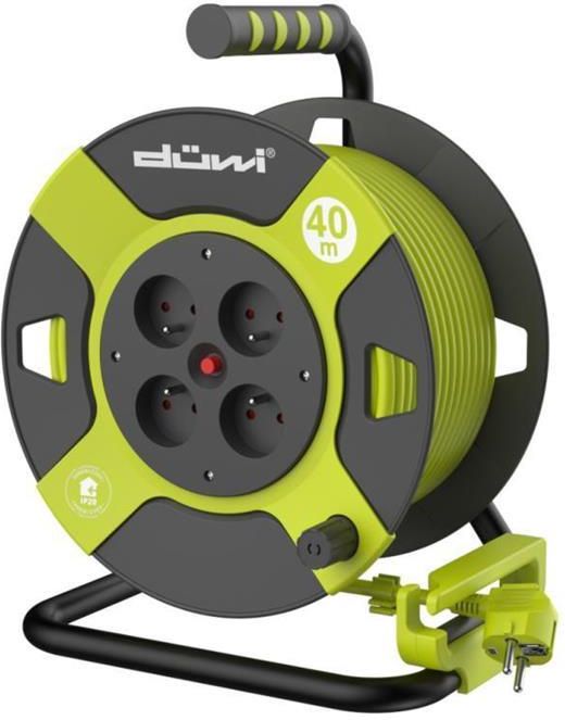 Przedłużacz bębnowy umożliwia podłączenie do jednego gniazda zasilającego kilku urządzeń. Przedłużacz idealny do wtyczek kątowych, wtyczek ze stykiem ochronnym. Produkt wysokiej jakości, wykonany z trwałych materiałów. Produkt jest łatwy w obsłudze i funkcjonalny. Minimalistyczny wygląd i prosta konstrukcja sprawdzi się doskonale w domu, warsztacie, garażu czy na budowie. Bęben z tworzywa sztucznego, zmniejsza wagę produktu i jest elastyczny. Dane techniczne: Przewód: H05VV-F 3G1.5 Długość przewodu: 40 m Liczba gniazd: 4x 230V / 16A z zabezpieczeniem termicznym Maks. obciążenie: w pełni rozciągnięty - 3000W, w pełni zwinięty - 1000W Stopień ochrony: IP20
