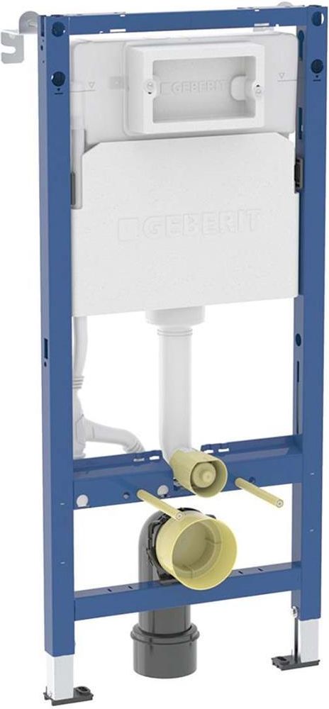 Element montażowy Duofix do WC naściennego ze spłuczką podtynkową Delta 12 cm Cel użytkowania do montażu w częściowej lub pełnej wysokości ścianki działowej pomieszczenia, montaż przed pełną lub suchą ścianą technologiczną dla grubości podłogi 0 - 20 cm do obsługi z przodu do obsługi za pomocą przycisków sterujących Geberit Delta do podłączenia Geberit AquaClean nie nadaje się do betonowania Właściwości geberit Delta spłuczka podtynkowa 12 cm (UP100), sterowanie z przodu samonośna rama malowana proszkowo rama do WC montowana na ścianie z wymiarami przyłączeniowymi zgodnymi z normą EN 33 i zakładką do 62 cm alternatywna pozycja montażowa dla kotew ściennych ocynkowane wsporniki głębokość płyty podstawy odpowiednia do montażu w profilach UW 50 U kolanko łączące można zamontować bez użycia narzędzi spłuczka podtynkowa izolowana przed rosą do spłukiwania 1-czynnościowego, 2-czynnościowego lub Start/Stop natychmiastowe dodatkowe płukanie jest możliwe przy ustawieniach fabrycznych przyłącze wody z tyłu lub w górnej środkowej części wyposażony w osłonę rury zasilającej do podłączenia toalet prysznicowych Geberit AquaClean z możliwością podłączenia do sieci elektrycznej Informacje techniczne ciśnienie przepływu: 10-1000 kPa maksymalna temperatura wody: 25 °C ilość płukania, ustawienie fabryczne: 6 i 3 l duża ilość spłukiwania, zakres regulacji: 4 / 4,5 / 6 / 7,5 l mała ilość spłukiwania, zakres regulacji: 2-4 l obliczone natężenie przepływu: 0,09 l/s minimalne nadciśnienie dla przepływu projektowego: 10 kPa Zakres dostawy wlot wody R 1/2", odpowiedni dla MF, ze zintegrowanym zaworem kątowym i pokrętłem ręcznym pokrywa do montażu zgrubnego dla otworu serwisowego zestaw przyłączeniowy do WC, Ø 90 mm kolanko przyłączeniowe 90° z PE-HD, Ø 90 mm adapter PE-HD, Ø 90 / 110 mm 2x śruby dystansowe 2x kotwy ścienne materiał mocujący
