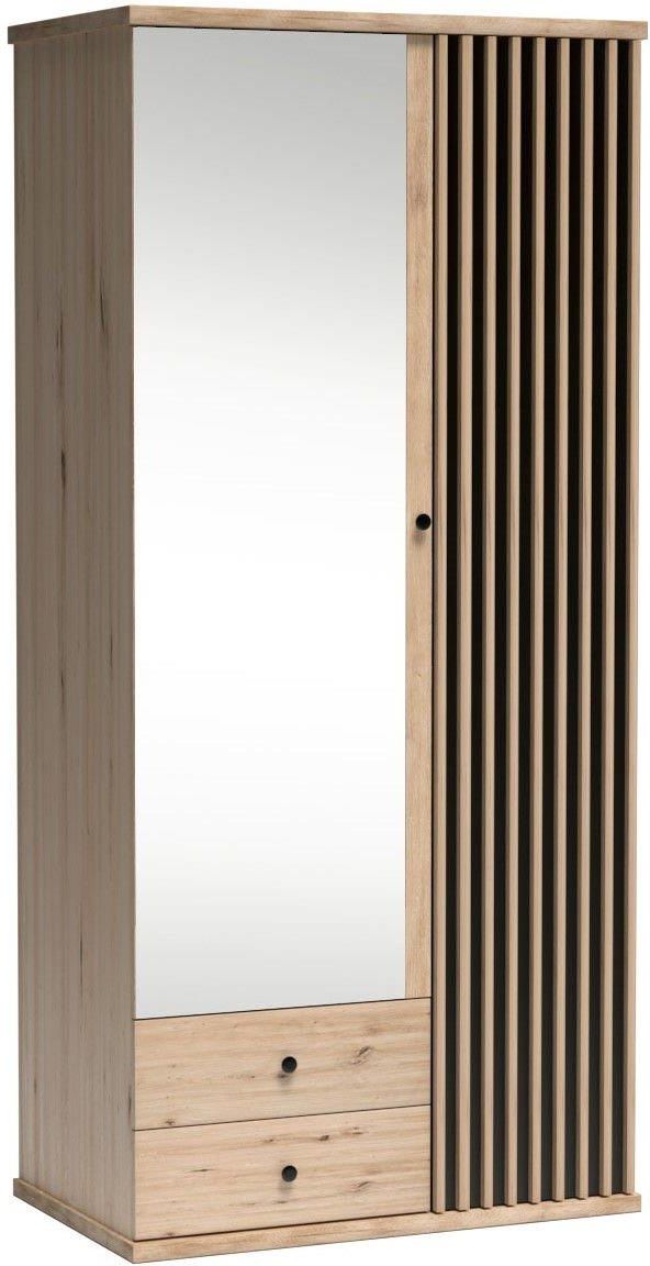 Jeśli szukacie Państwo nowoczesnej szafy łączącej funkcjonalność wraz z unikatowym, nieco loftowym wyglądem to mamy coś właśnie dla Was. Harmonia i balans osiągnięte zostały poprzez zestawienie naturalnego odcienia Artisan wraz z czarnymi dodatkami oraz wstawką lameli. Duże lustro umieszczone na froncie optycznie powiększa przestrzeń. Wszystkie bryły z kolekcji Cali łączy najwyższa jakość materiałów oraz solidność wykonania.