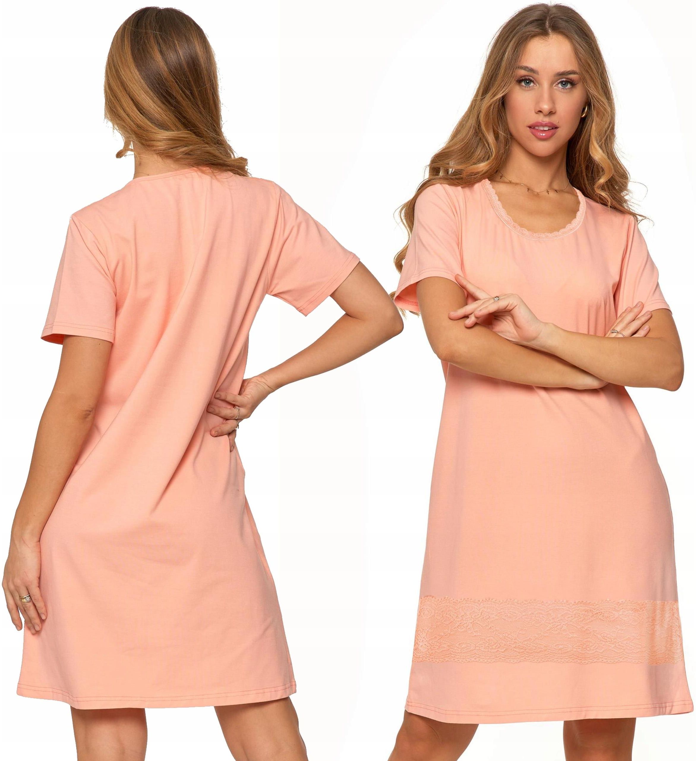 Koszula Nocna Damska Bawełniana z Koronką Krótki Rękaw RÓŻOWY MORAJ L Zduny