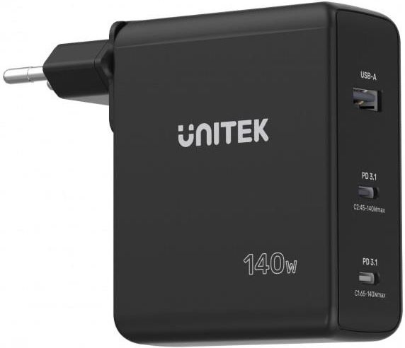 Ładowarka sieciowa Unitek GaN 3 1x USB, 2x USB TYP-C PD 3.1, 140W, QC 3.0 - 18W - czarna (P1115A) Zduny