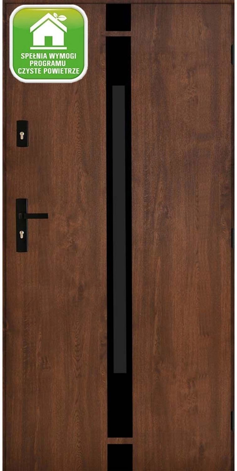 Prawostronne drzwi zewnętrzne Silves marki Pantor w kolorze orzech o szerokości 90 cm są podstawą wyposażenia domu. Drzwi Silves zapewniają zarówno bezpieczeństwo, jak i komfort akustyczny oraz cieplny. Drzwi są dostępne w trzech wariantach kolorystycznych: antracyt, złoty dąb i orzech. Wysokiej jakości, stalowe drzwi Oferowane skrzydło drzwi zewnętrznych charakteryzuje się szczelnym wypełnieniem termoizolacyjnym z płyta izolacyjnej EPS i całkowitą grubością skrzydła wynoszącą 72 mm. Prawostronne drzwi Silves są stalowe i przeznaczone do budynków jednorodzinnych, wielorodzinnych oraz mieszkań. Pokrycie skrzydła wykonano z blachy stalowej lakierowanej Nano Advance 0,5 mm. Drzwi są odporne na szkodliwe działanie warunków atmosferycznych. Wyposażono je również w dodatkowe zabezpieczenie w postaci 3 bolców antywyważeniowych, które zabezpieczają drzwi przed próbami wyważenia i zawiasów trójdzielnych. Właściwości termoizolacyjne i odporność na działania atmosferyczne Prawostronne drzwi zewnętrzne Silves pełnią funkcję ochrony domu przed niekorzystnymi warunkami atmosferycznym oraz pomieszczeń przed utratą ciepła. Gwarancją odpowiedniej termoizolacyjności jest współczynnik przenikania ciepła U. Im niższy współczynnik U, tym lepsze zabezpieczenie. Ograniczenie utraty ciepła pozwala oszczędzić energię. Współczynnik przenikania ciepła U dla oferowanych drzwi wynosi 1,3 W/m2K. Ponadto dzięki szybie w drzwiach zewnętrznych można zyskać widok na otoczenie i dodatkowe doświetlenie strefy wejścia. Światło dzienne wpadające do pomieszczenia rozjaśnia korytarz. Akcesoria w komplecie W komplecie znajduje się: ościeżnica łatwa w montażu, klamka, szyld górny, 2 zamki, 2 wkładki w systemie jednego klucza, próg PVC, szyba hartowana, 2 uszczelki, zaślepki, celownik PVC z uszczelką. Drzwi podlegają gwarancji przez okres 2 lat. Program Czyste Powietrze Celem programu Czyste Powietrze jest poprawa jakości powietrza, a także zmniejszenie emisji gazów cieplarnianych, dzięki wymianie źródeł ciepła oraz poprawie efektywności energetycznej jednorodzinnych budynków mieszkalnych. Program rządowy polega na dofinansowaniu wymiany starych źródeł ciepła na nowoczesne oraz przeprowadzeniu koniecznych zmian termomodernizacyjnych budynku. Program Czyste Powietrze 3.0 oferuje kilka form wsparcia do wymiany pieców na ekologiczne źródła energii oraz do termomodernizacji domów i mieszkań. Tegoroczne rachunki za ogrzewanie skłaniają wielu właścicieli domów do zastanowienia się nad ich ociepleniem, w tym również nad wymianą starych okien i drzwi. To bardzo dobra, bo nadzwyczaj opłacalna decyzja. Dzięki temu możemy zaoszczędzić co najmniej 40 proc. zużywanej energii cieplnej, a dodatkowo otrzymać wysokie dofinansowanie do prac termomodernizacyjnych. Zmiany w programie "Czyste Powietrze", wprowadzone na sezon 2023, pozwalają bowiem na duże, niekiedy nawet 100-procentowe dofinansowanie m.in. do wymiany okien i drzwi. Więcej informacji znajdziesz tutaj - Program Czyste Powietrze - STOP Smog Poniżej przedstawione wymiary netto, są wymiarami skrzydeł wraz z ościeżnicą.