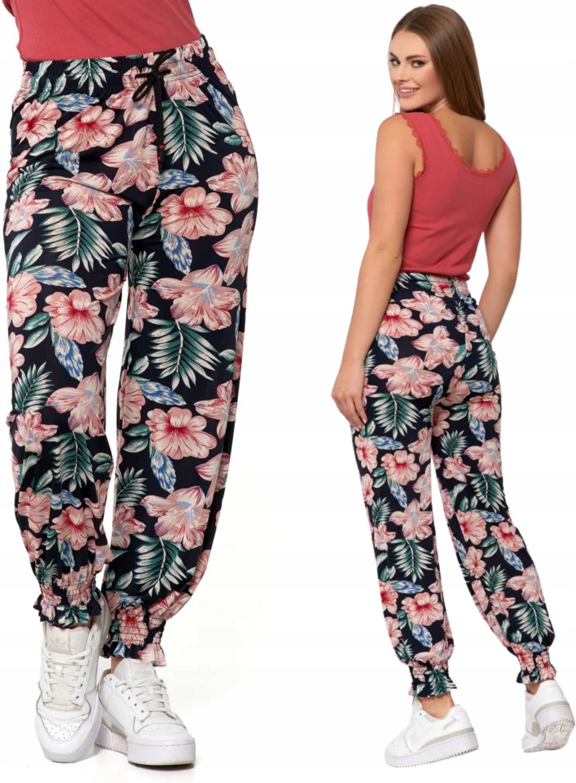 Spodnie Damskie Długie Luźne Nogawki Alladynki Lekkie Kwiaty MORAJ XXL Zduny