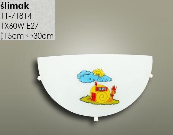 Lampa ścienna półplafon dziecięcy ŚLIMAK 11-71814 Candellux Dane techniczne: Symbol: 11-71814Seria: ŚLIMAKKolor: BiałyKolor producenta: BiałyPrzeznaczenie: Pokój dziecięcyRodzaj: Lampy ścienneMateriał dominujący: MetalZasilanie (V): 230Rodzaj zasilania: SiecioweMateriał dodatkowy: SzkłoStopień …
