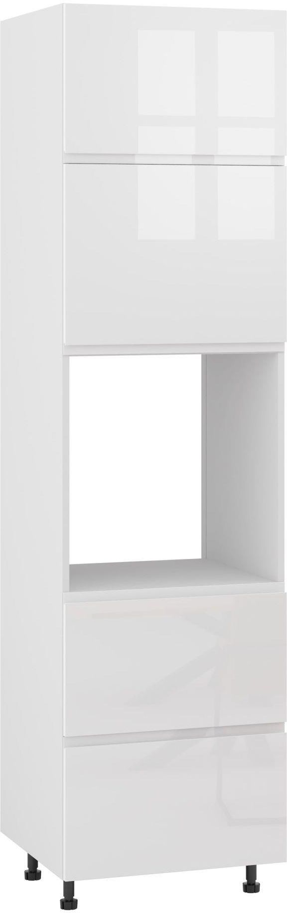 ALBA SŁUPEK WYSOKI DPS2-60-220 MODERNBOX BIAŁY POŁYSK to model z serii mebli kuchennych w stylu nowoczesnym, nowojorskim. glamour i eklektycznym. Prezentowany słupek do kuchni posiada podwójne drzwi uchylne, wnękę oraz dwie szuflady na prowadnicach Modernbox zapewniających system cichego domknięcia. Kolekcja kuchni Komfort wyróżnia się białym kolorem powierzchni o połyskującym wykończeniu, a także frezowanymi uchwytami. Front słupka wykonany został z akrylowanej płyty MDF, zaś korpus z solidnej płyty laminowanej.