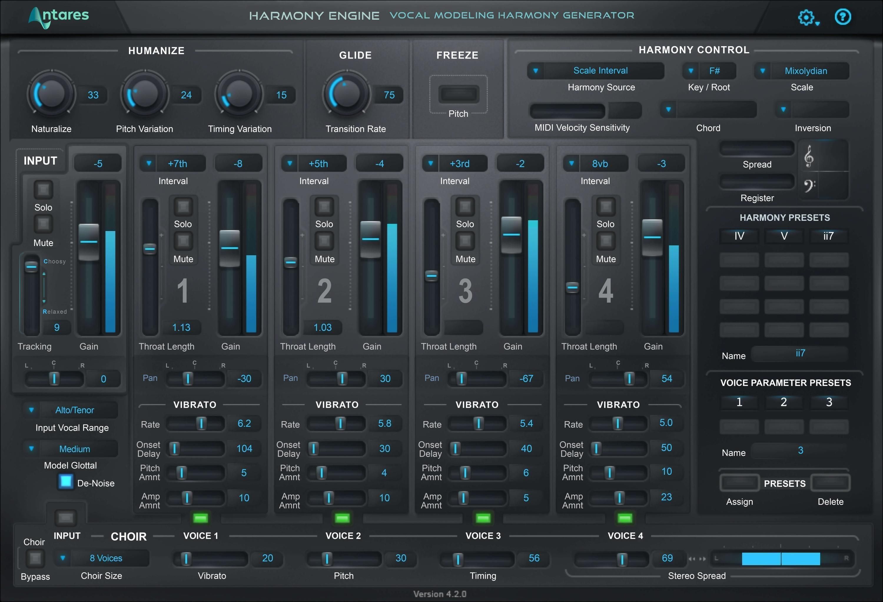 Antares Harmony Engine Evo - Wtyczka Vocal-Harmonizer (do pobrania) Oferuje cztery niezależne głosy z korekcją formantu, regulowanym charakterem, wibrato, głośnością i panoramą Funkcja chóru z pięcioma kanałami, która wzbogaca każdy głos o dwa, cztery lub osiem głosów unisono Technologia …