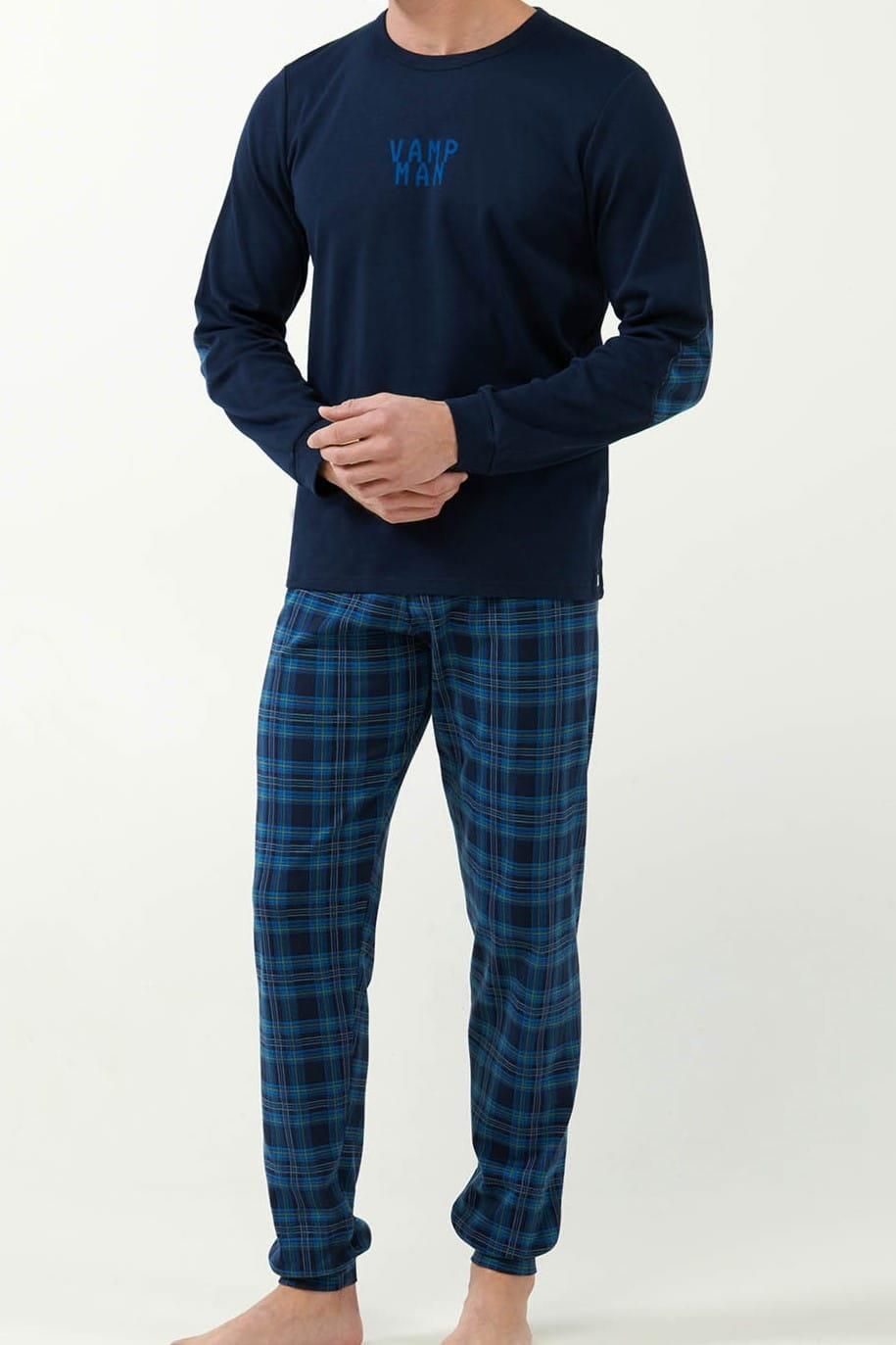 Piżama męska z długim rękawem oraz spodniami VAMP 21620 granatowa.