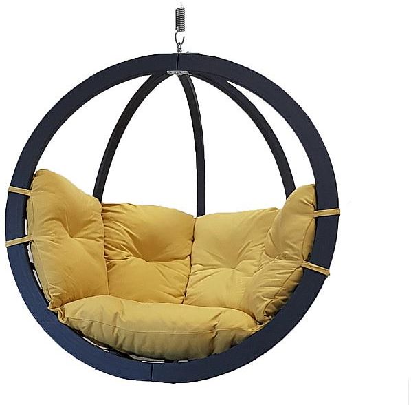 Fotel Hamakowy Drewniany Musztardowy Swing Chair Single Antracyt Żelechów