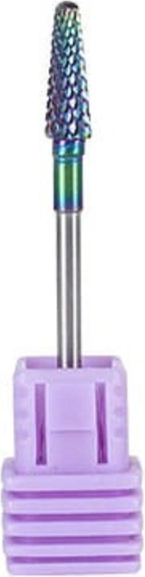 FREZ TĘCZOWY DO OBRÓBKI PAZNOKCI FRT500-1 Frez w kształcie płomienia z ząbkami nie uszkodzi płytki paznokcia. Jest trwały i wydajny oraz precyzyjny. Idealnie sprawdzi się w technikach manicure frezarkowego. Frez dokładnie i precyzyjnie usuwa masę akrylową, żelową i hybrydową. Odpowiednia wielkość ząbków idealnie ściąga lakiery hybrydowe, żele, akryle nie uszkadzając przy tym płytki paznokcia. Frez można w sposób bezpieczny sterylizować oraz dezynfekować. Uniwersalna średnica trzpienia sprawia, że pasuje do każdej dostępnej na rynku frezarki z głowicą typu "twist and lock". WYMIARY Długość całkowita: 5 cm Długość trzpienia: 3,1 cm Długość stożka: 1,5 cm Średnica trzpienia: 2,35 mm (pasuje do większości frezarek)