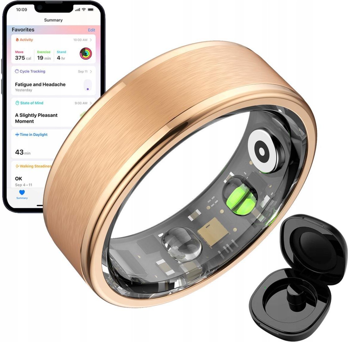 Smartring OneRing 59mm złoty SR01GD-59 plus etui do ładowania FUNKCJE I PARAMETRY Ulepszone czujniki - wypukła konstrukcja czujników do bardziej precyzyjnego pomiaru tętna i natlenienia krwi Minimalistyczna konstrukcja - 2,7 mm grubości i 4,4g wagi Wodoszczelność IP68 Pomiar tętna Pomiar …