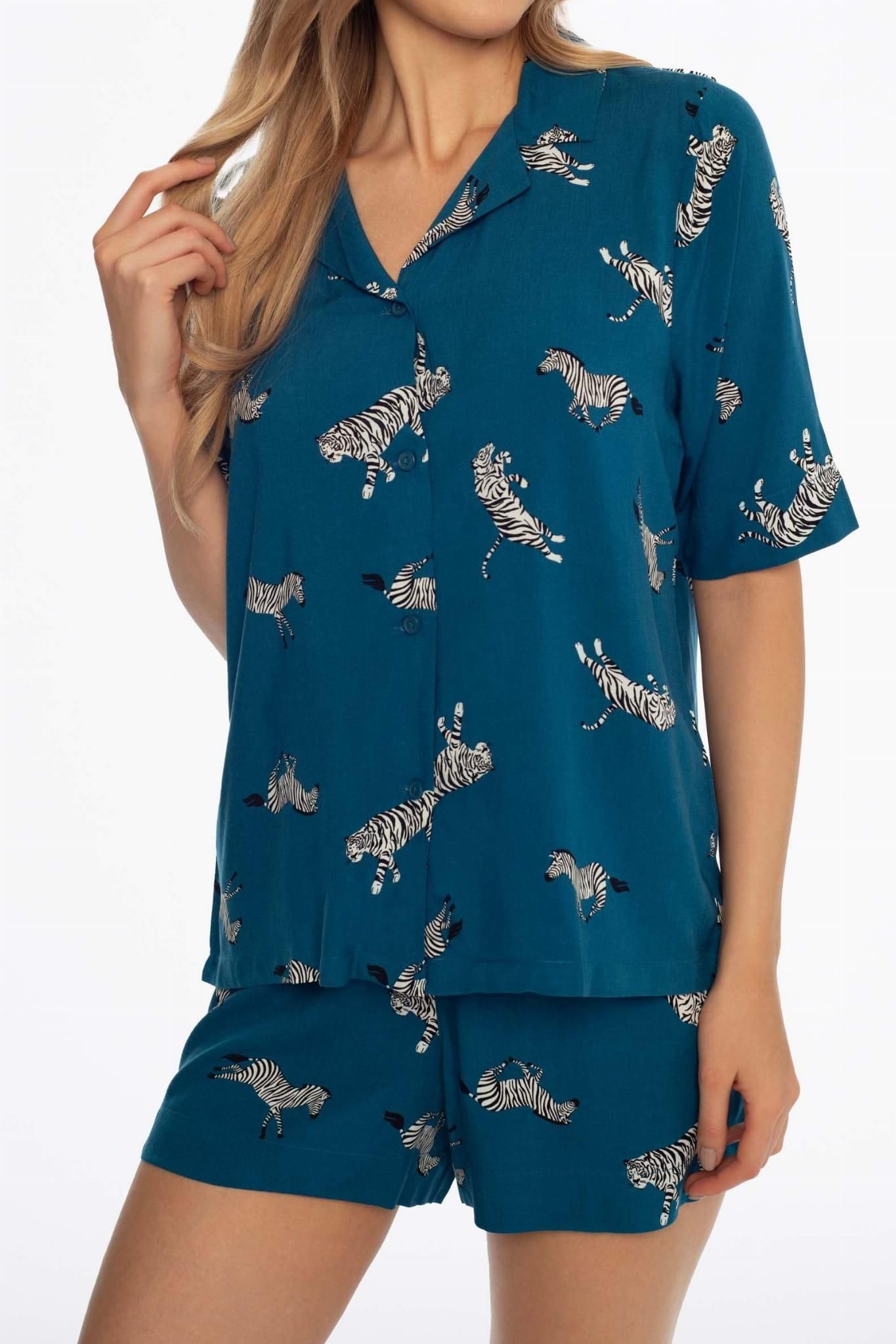 Rozpinana piżama damska z krótkimi rękawami i z krótkimi spodenkami Henderson 41305-65X Airy niebieska
