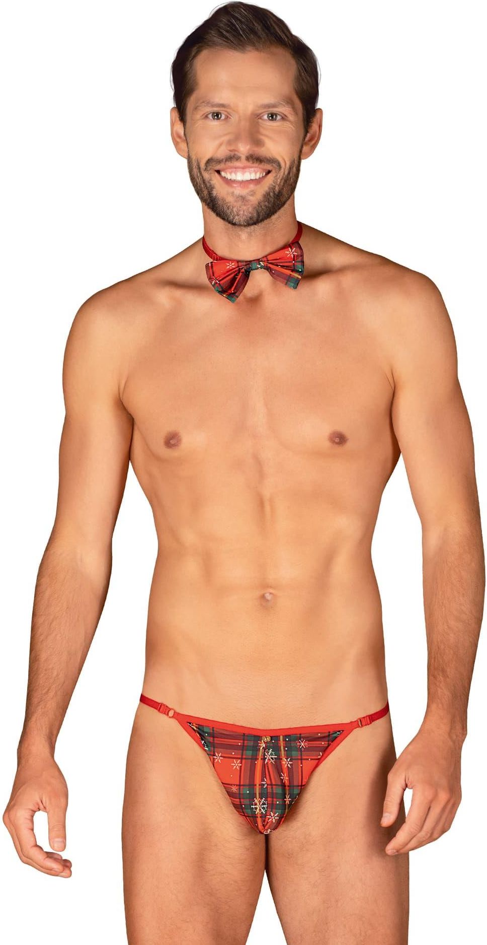 Wyjątkowy design i elegancja Prezentujemy ekskluzywne stringi Mr Merrilo, które łączą w sobie niepowtarzalny styl i najwyższą jakość wykonania. Model ten został stworzony z myślą o mężczyznach, którzy cenią sobie komfort i nieszablonowe rozwiązania. Świąteczny motyw nadruku dodaje charakteru, a precyzyjne wykończenie podkreśla dbałość o każdy detal. Regulowany obwód majteczek zapewnia idealne dopasowanie do sylwetki, gwarantując maksymalną wygodę noszenia. Stringi Mr Merrilo to doskonały wybór dla mężczyzn, którzy pragną poczuć się wyjątkowo i stylowo, zarówno na co dzień, jak i podczas specjalnych okazji. Luksusowy komfort i dopasowanie Stringi Mr Merrilo wykonane zostały z najwyższej jakości materiałów, co zapewnia nieporównywalny komfort noszenia. Połączenie 90% poliamidu i 10% elastanu gwarantuje doskonałą elastyczność i trwałość. Materiał jest miękki w dotyku, przewiewny i idealnie dopasowuje się do ciała. Regularny krój podkreśla atuty sylwetki, a regulowany obwód pozwala na idealne dopasowanie. W zestawie znajduje się również elegancka mucha, która dopełnia całości i dodaje szyku. Stringi zapakowane są w stylowe pudełko, co sprawia, że idealnie nadają się na prezent. Dlaczego warto wybrać ten model – Regularny krój podkreślający sylwetkę – Świąteczny motyw nadruku – Regulowany obwód dla idealnego dopasowania – Zestaw z elegancką muchą – Wysoka jakość materiałów i wykonania – Pakowane w stylowe pudełko, idealne na prezent Krój: Regular fit Krój, który podkreśla sylwetkę Materiał z nadrukiem Motyw świąteczny Mucha w komplecie Obwód majteczek regulowany Pakowany w pudełko Wysoka jakość Elastan: 10% Poliamid: 90%