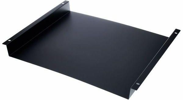 Thon Top Tray 1U Półka do szafy rackowej 19" Do montażu w górnej części szafy L-rack lub obudowy maski Małe konsole mikserskie, urządzenia efektowe itp., które nie są w formacie 19", można zamontować za pomocą dołączonej taśmy rzepowej (samoprzylepnej z haczykami i pętelkami) Głębokość: 38 cm Wysokość: 1 HE Materiał: stal malowana proszkowo Kolor: czarny