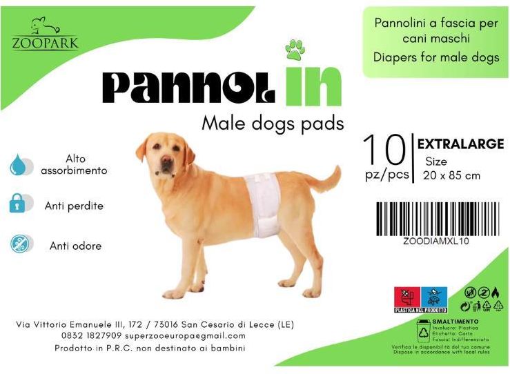 Zoopark Pannolin Pieluchy Dla Psów Rozm. Xl 20X85Cm 10Szt/Opak. ZOODIAMXL10 Żelechów