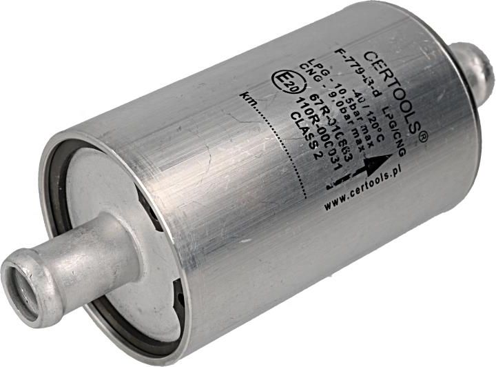 Opis produktu Filtr fazy lotnej CERTOOLS - F779/B-D 14/14 (włókno szklane, wkład wymienny CF-109-2) - filtr fazy lotnej LPG F-779-B-d z wymiennym wkładem CF-109-2 firmy CERTOOLS. Opis zastosowania Filtr fazy lotnej CERTOOLS - F779/B-D 14/14 (włókno szklane, wkład wymienny CF-109-2) - filtr fazy lotnej LPG z wymiennym wkładem stosowany w części niskociśnieniowej samochodowych instalacji gazowych IV generacji (sekwencyjnych wtryskach gazu w fazie lotnej). Montowany pomiędzy reduktorem, parownikiem a czujnikiem ciśnienia i listwą wtryskiwaczy LPG chroni te elementy przed zanieczyszczeniami mogącymi pojawić sie w autogazie. Dane techniczne Filtr fazy lotnej CERTOOLS - F779/B-D 14/14 (włókno szklane, wkład wymienny CF-109-2): materiał obudowy - stop aluminium, materiał wymiennego wkładu CF-109-2 - włókno szklane, pokrywa obudowy - mocowana wewnętrznym pierścieniem osadczym Seegera, średnice obu króćców - 14 mm, długość całkowita filtra - 99 mm, kierunek przepływu gazu - określony na obudowie, ciśnienie kwalifikacyjne - 450 kPa, zakres zalecanej temperatury pracy - od -40 do 120 celsjuszy, homologacja na LPG - E20-67R-010663, homologacja na CNG - E20-110R-000031, zalecana wymiana wkładu - co około 20 000 km lub zgodnie z wymaganiami producenta. Cechy produktu Typ filtra: z wymiennym wkładem Model filtra: F-779/B-D Wkład: włókno szklane Wejście: 14 mm Wyjście: 14 mm Obudowa: metal Sposób montażu: na przewodzie Informacje dodatkowe Kod produktu Nagaz: 32.CRT.971 Producent: CERTOOLS Kod producenta: 52-779-01414SJ Numer homologacji: E20-67R-010663