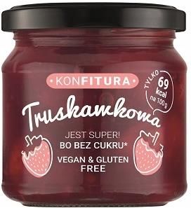 Konfitura Owocowa Truskawkowa bez dodatku cukru 190g Składniki: truskawka 55%, woda, koncentrat soku jabłkowego, skrobia, substancja żelująca: pektyny, sól, regulator kwasowości: kwas cytrynowy. Zawiera naturalnie występujące cukry. Wartość odżywcza produktu w 100g: Wartość energetyczna294 kj/69 …