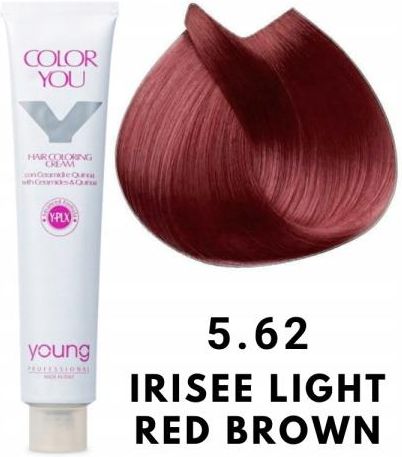 FARBA NR 5.62 Czerwono-Miedziany z dodatkiem fioletu Jasny Brąz Young Color You Professional to wyjątkowa farba do włosów zawierająca 111 odcieni, która łączy w sobie innowacyjną formułę z najwyższej jakości składnikami pielęgnacyjnymi. Ta farba zawiera unikalną cząsteczkę PLEX, ceramidy oraz komosę ryżową, które zapewniają kompleksową pielęgnację podczas procesu koloryzacji. Cząsteczka PLEX to zaawansowany składnik, który chroni włosy przed uszkodzeniami spowodowanymi przez zabiegi chemiczne, takie jak farbowanie czy rozjaśnianie. Działa on głęboko w strukturze włosa, wzmacniając go i zapobiegając łamliwości. Dzięki temu włosy pozostają zdrowsze, gładkie i odporniejsze na uszkodzenia. Ceramidy są kluczowymi składnikami, które pomagają w odbudowie i wzmocnieniu struktury włosa. Wnikając głęboko w jego warstwy, ceramidy uzupełniają ubytki w strukturze włosa, przywracając mu elastyczność i sprężystość. Dodatkowo chronią włosy przed utratą wilgoci, zapewniając im odpowiednie nawilżenie i zapobiegając przesuszeniu. Komosa ryżowa to naturalny składnik o wielu właściwościach pielęgnacyjnych. Bogata w składniki odżywcze, takie jak witaminy, minerały i proteiny, komosa ryżowa nawilża i regeneruje włosy, nadając im zdrowy wygląd i blask. Dodatkowo łagodzi podrażnienia skóry głowy i wspomaga jej naturalną równowagę. Dzięki połączeniu tych składników, farba Young Color You Professional nie tylko zapewnia trwały i intensywny kolor, ale także pielęgnuje włosy od wewnątrz oraz nie podrażnia skóry głowy. Odkryj tajemnicę pięknych i zdrowych włosów z farbą Young Color You Professional! Sposób użycia W niemetalowej miseczce wymieszaj farbę z oksydantem 10-20-30-40 vol., w proporcji 1:1,5(np. 50 ml farby+ 75 ml utleniacza), w przypadku superrozjaśniaczy zachować proporcję 1:2(np. 50 ml farby + 100 ml utleniacza) Nałożyć mieszankę na suche włosy i pozostawić na 30 minut, w przypadku dużej ilości siwych włosów przedłuż czas trzymania mieszanki do 40 minut. Farbowanie ton w ton lub przyciemnienie o ton – 1:1,5 – 20 vol (6%) - 30/35 minut Tonalizacja – 1:1,5 – 10 vol (3%) - od 5 do 30 minut (nakładać na suche lub wilgotne włosy Rozjaśnianie od 1 do 3 tonów – 1:1,5 – 30 vol (9%) - 30/35 minut Rozjaśnianie superrozjaśniaczami o 4/5 tonów – 1:2 – 40 vol (12%) - 45/55 minut Chrome kolor – 1:1,5 – 20/30 vol (6%/9%) - 30 minut Chrome tonowanie – 1:1,5 – 10/20vol (3%/6%) - 20/30 minut Korektory – używać do intensyfikacji koloru lub neutralizacji niepożądanego koloru