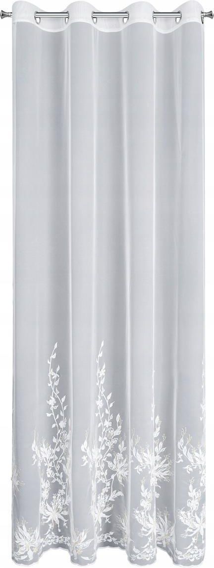 Eurofirany Zasłona Gotowa Na Przelotkach Julia 140X250 Eva Minge Białbiała Aplikacja Z Kwiatowym Haftem Zelów
