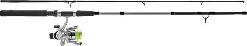 Zestaw spinningowy do nieco cięższych połowów w jeziorach i lżejszych połowów przybrzeżnych! Wędka z włókna szklanego wytrzymuje przynęty o masie do 30 g. W zestawie jest żyłka.