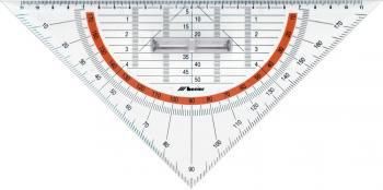 Ekierka geometryczna z uchwytem LENIAR Geo (Geo-trójkąt) o długości 25 cm. Profesjonalna ekierka o długości przeciwprostokątnej 25 cm ze skalą 22 cm/1mm. Wykonana z twardego, transparentnego tworzywa. Solidny, zdejmowany uchwyt pozwala na lepszą kontrolę zwiększając komfort użytkowania. Posiada punkty podnoszące ponad powierzchnię. Nadrukowany kontrastowy kątomierz 180°/1°. Podziałka 11cm-0-11cm. Indywidualne opakowanie. Wyprodukowana w Polsce.